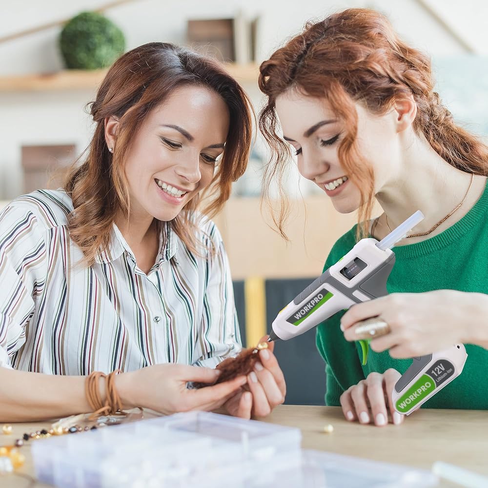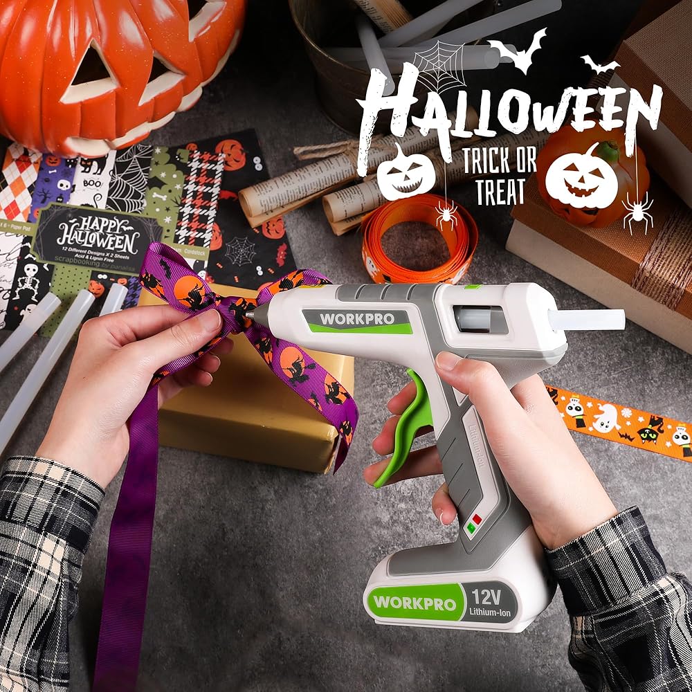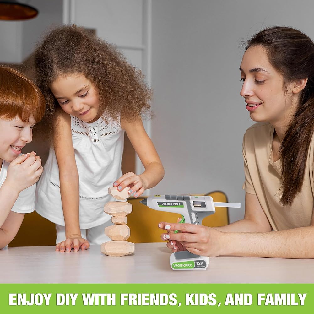 WORKPRO Full Size Cordless Hot Melt Glue Gun - 12V Rechargeable Fast Preheating Glue Gun Kit with 15pcs Full Size Glue Sticks, Auto Power-off Glue Gun for DIY Project, Art, Craft, Decoration - White
