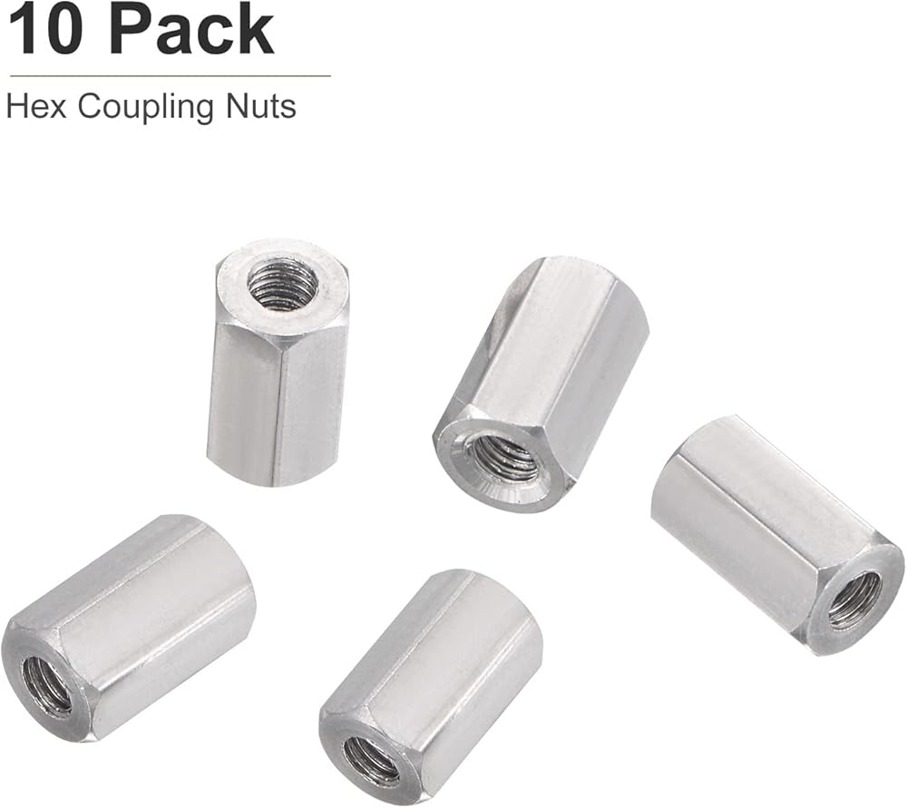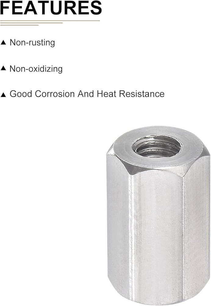 Material - Made of 304 stainless steel material with polishing finish, these hex coupling nuts are tough, non-rusting, non-oxidizing, and have good corrosion and heat resistance.