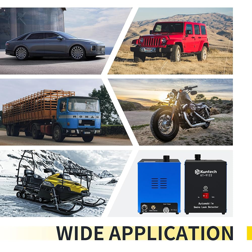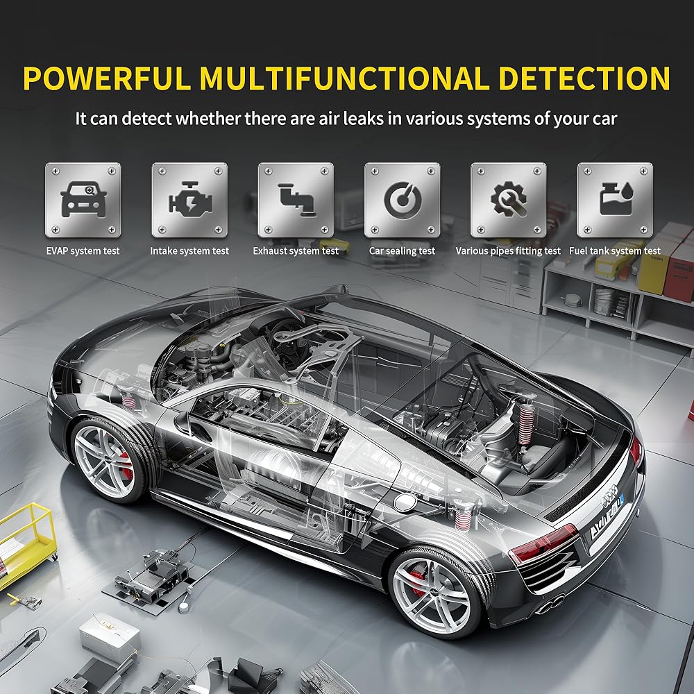 【Multifunction】 This smoke detector has multiple functions such as EVAP system test, car sealing test, fuel tank system test, exhaust system test, intake system test, etc. It's suitable for all cars, motorcycles, light trucks, boats, etc.