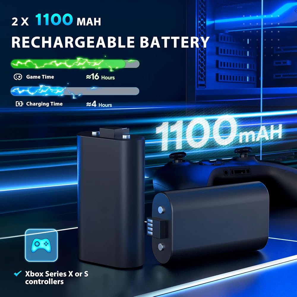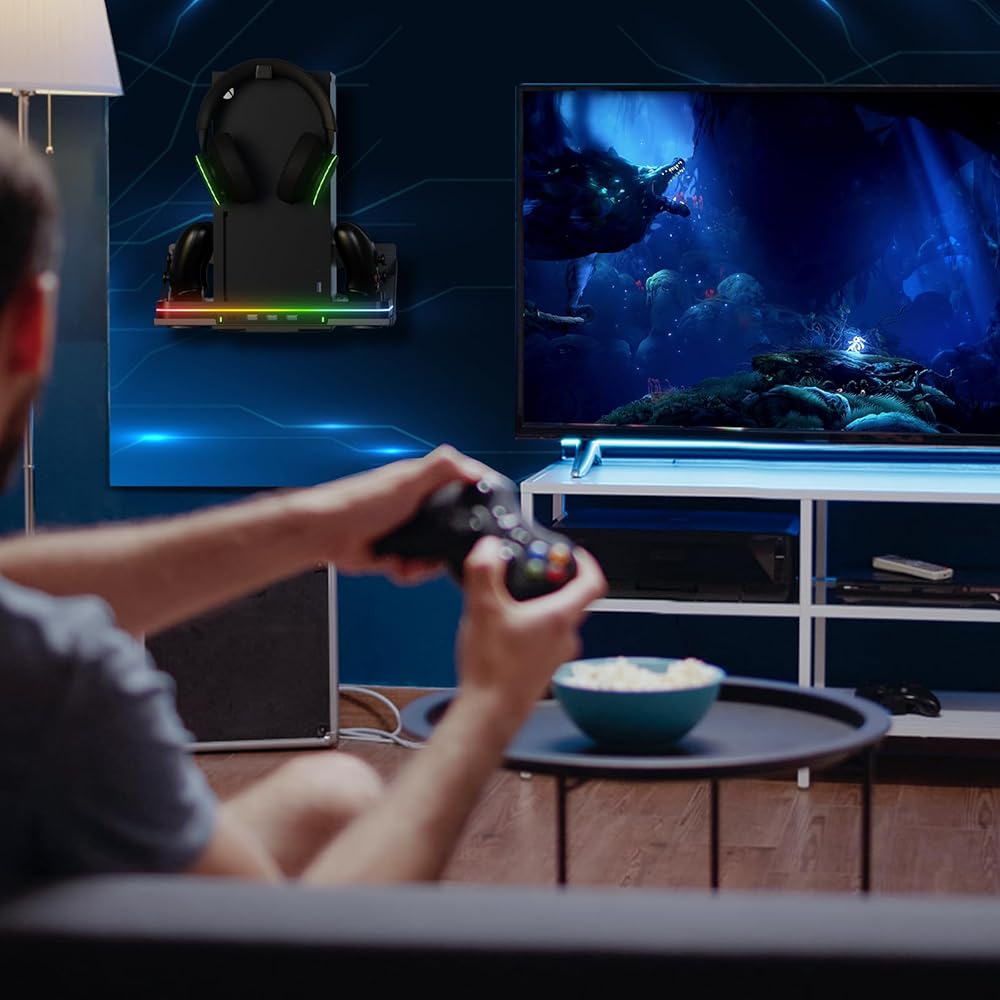 【Headset Stand & USB Ports】The Xbox Series X/S Charger dock station with Headset Stand. 3 USB ports on the front give the option to charge or power up other devices you may need to play the game with, Such as mouse, keyboard, wired controller and other gaming devices. Minimise the space taken up by accessories and keep the play area tidy.