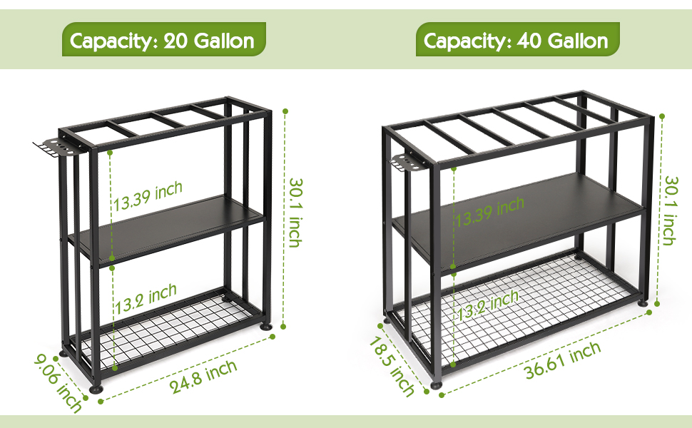 Two Sizes: Large aquarium stand size: 36.6"L x 18.5"W x 30.1"H, fits most 40 gallon aquariums, can hold up to 660 lbs; Small aquarium stand size: 24.8"L x 9.1"W x 30. 1"H, fits most 20 gallon aquariums, up to 660 lbs. Since there are many different models of aquariums on the market, please measure your tank to make sure it will fit.