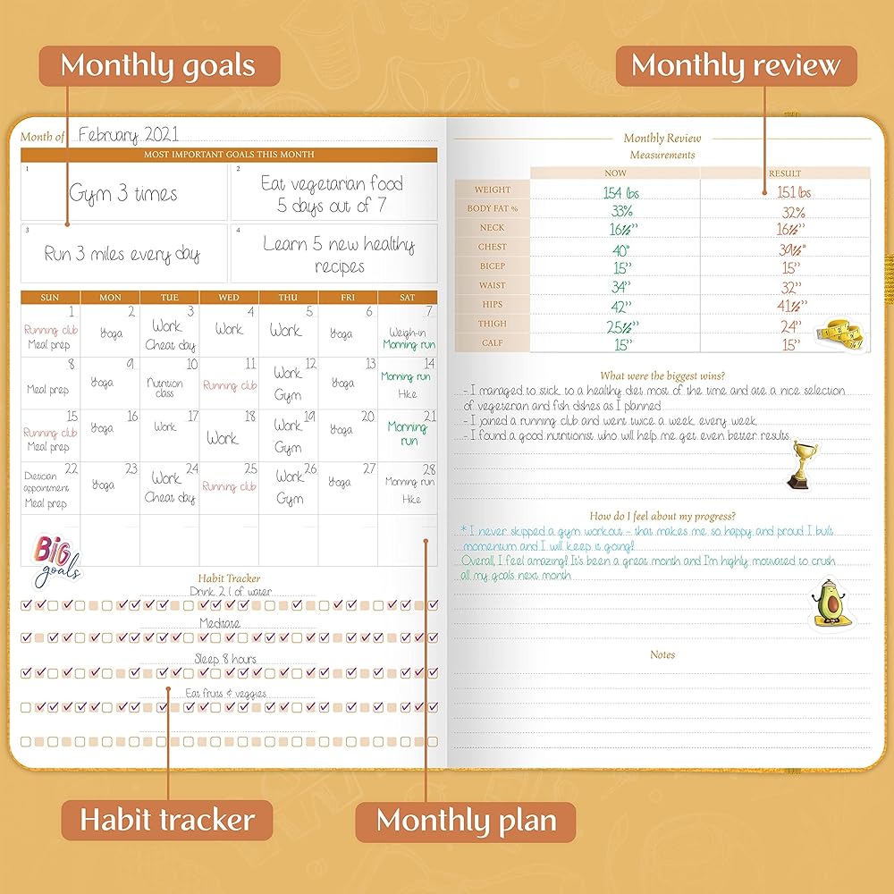 DEVELOP A STRATEGY TO HIT YOUR WELLNESS GOALS: This fitness and nutrition journal lasts 3 months and helps you set big wellness goals, break them into manageable action steps, and incorporate them into your daily agenda to work on the consistently.