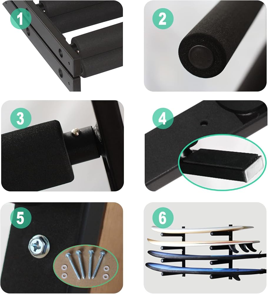 Surfboard Wall Rack One Pair Display Mount Storage Rack Paddle Rack Stand Up Paddleboard Wall Storage Racks HUIMENG Our Surfboard Wall Rack your storage space while protecting your gear from excess wear and tear Well designed, low profile, Surfboard display rack – an essential for any surfer. This rack's stylish, yet minimalist design makes it perfect for indoor use, The rack easily and securely mounts to the wall, transforming your surfboard into wall art. Displaying your boards. Compact wall storage solution for up to 4 shortboards or longboards. For store your bikes, kayaks, paddleboards, surfboards, skis, snowboards, wakeboards, skateboards, canoes, fishing rods, tools, and more! Product Features: -Strong design can hold shortboards,longboards -Easy to install and remove -The foam on the brackets can avoid scratching your surfboards -Can be installed horizontally or vertically Product Dimensions: extends 4" out from the wall 31" tall along wall 12" wide -Each Kit Includes: 2×Brackets; 8×Arms 1×Accessories ✔ Don't Delay! Stock is Strictly Limited! CLICK the 'Add to Cart' Button at the Top of this Page.