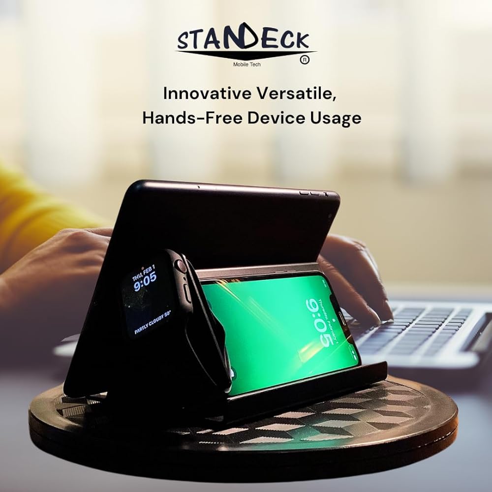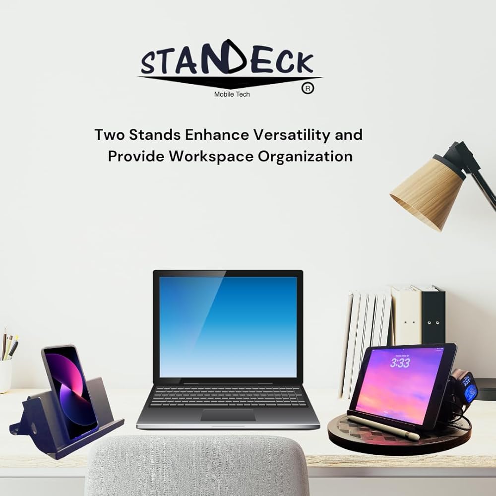 Versatile Device Docking: Our STANDECK docking station is designed to accommodate both mobile phones and tablets, providing a versatile solution for hands-free viewing and accessibility