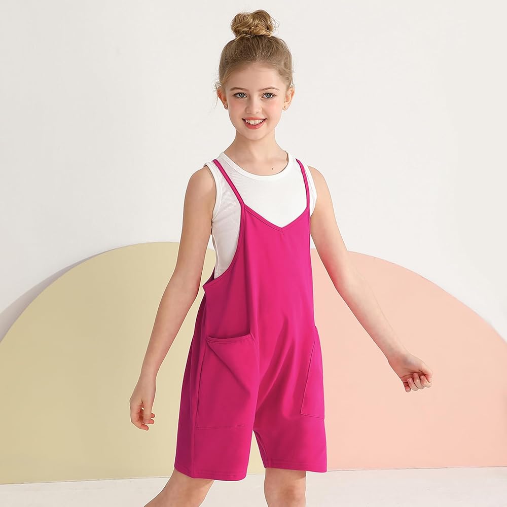 Warm Tips:1 Pc girls jumpsuit.This spaghetti-strap romper is suitable for 7-14 Years old girls,super loose and can be taken in your normal size.Hand wash cold,soft machine washable.Do not bleach,hang dry.
