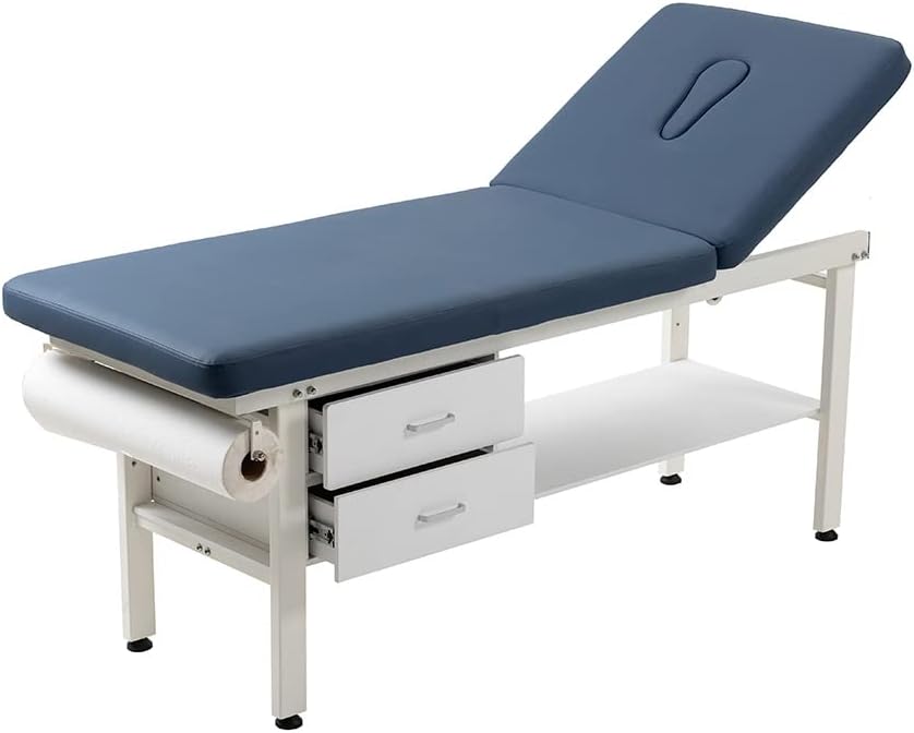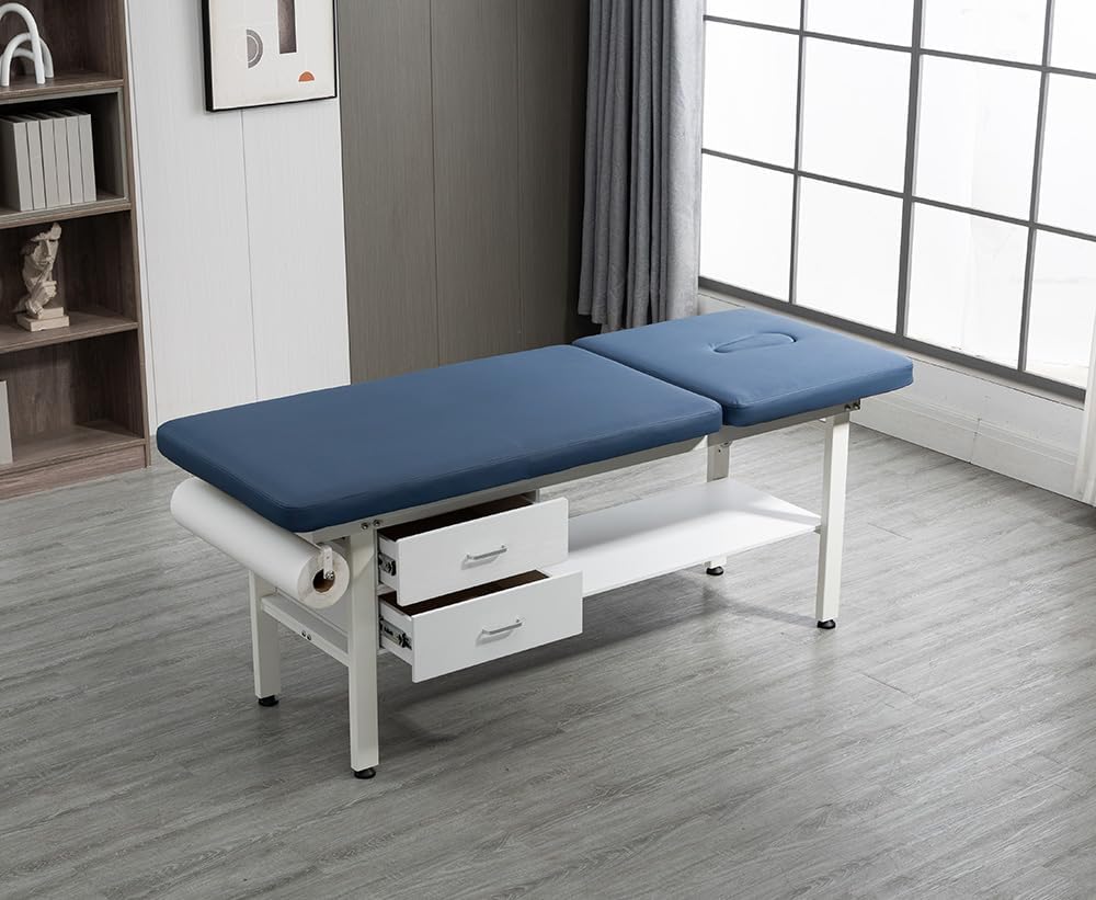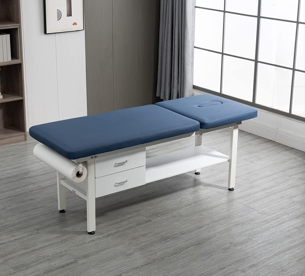 27.6" Width Comfortable Fixed Height Medical Exam Table Backrest Adjustable with Paper Holder and Breath Hole & Two Drawer for Clinic Lab Treatment (Blue)