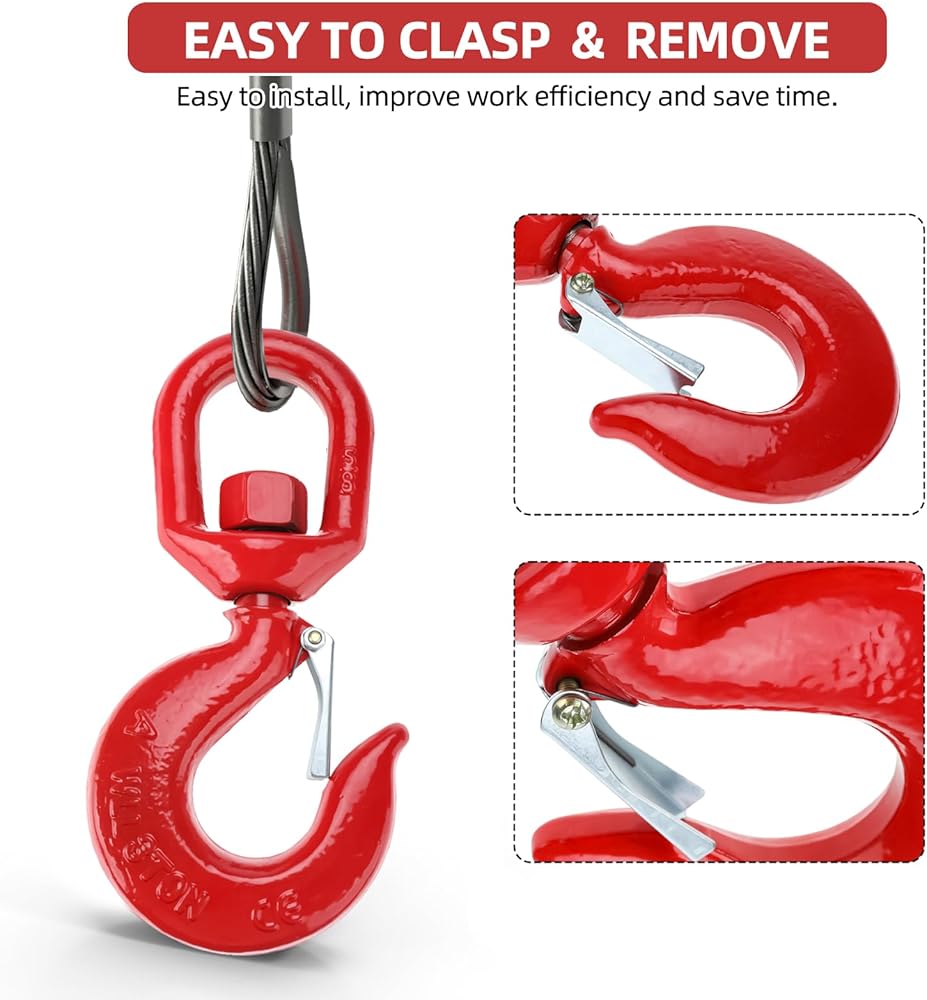 ☑【360 Rotating Hoist Hook】 The 360 degree rotating design effectivelyeliminates the rotating force generated during hoisting. It allows you to change the lift angle and rotation at will.