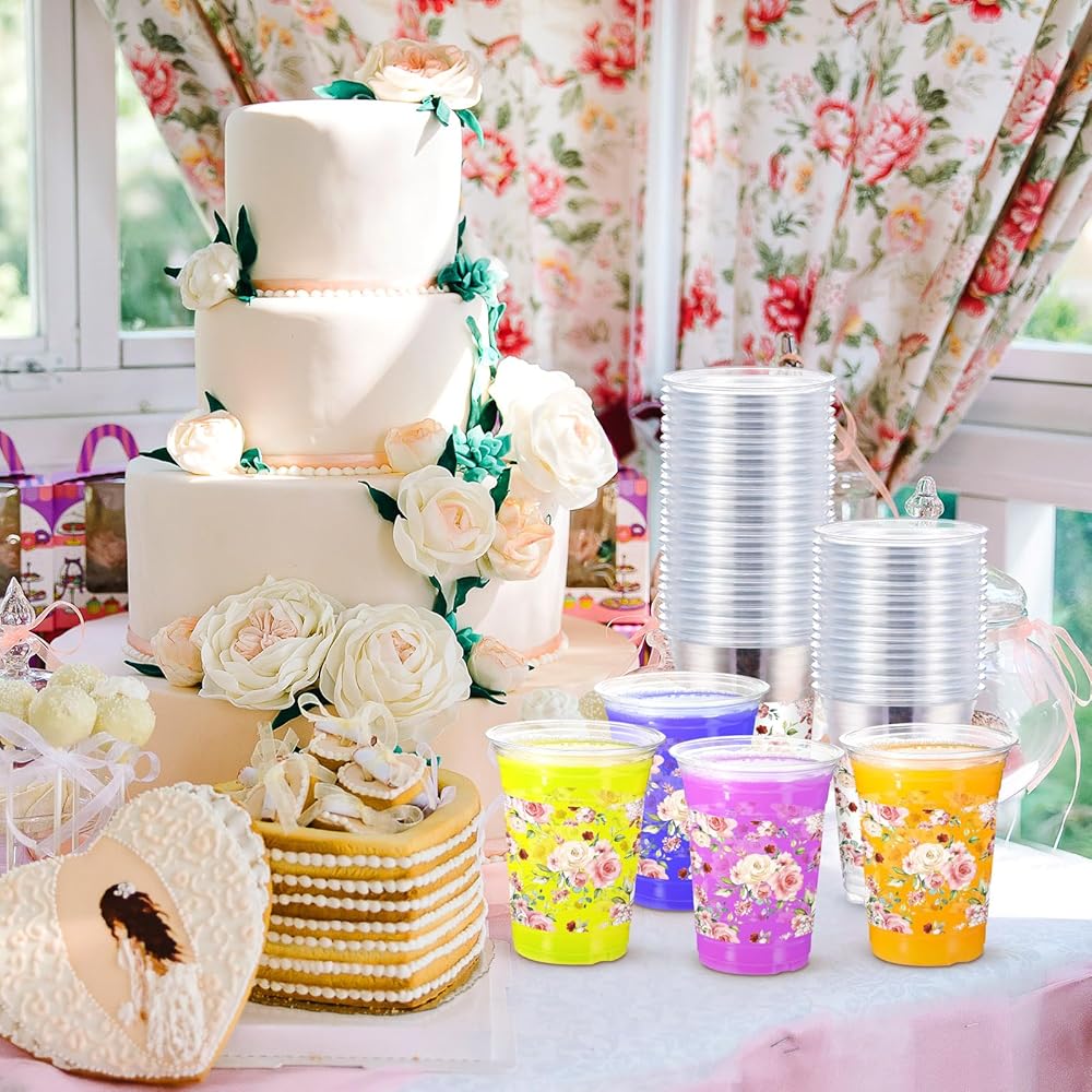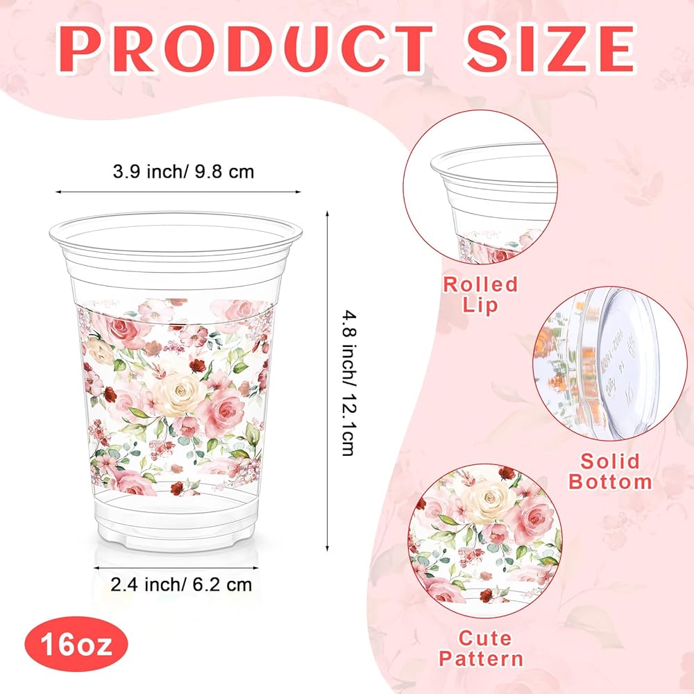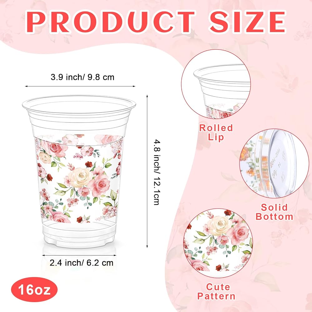 • Appropriate Capacity: the top diameter of the greenery baby shower cup is about 3.9 inches, the bottom diameter is about 2.4 inches, the height is about 4.8 inches, and the capacity is about 16 ounces, which is the ideal size for guests to hold beverages, and they are also stackable and convenient to store without taking up too much space