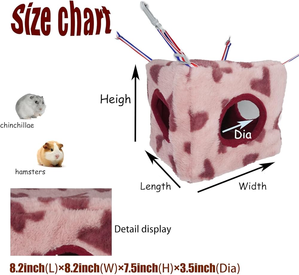 Size: 8.2 x 8.2 x 7.5 inches, the door's diameter: 3.5 inches, great option for Ferrets, Rats, Sugar Gliders & other climbing small animals, your little babies can either lay on the top or curl up inside.