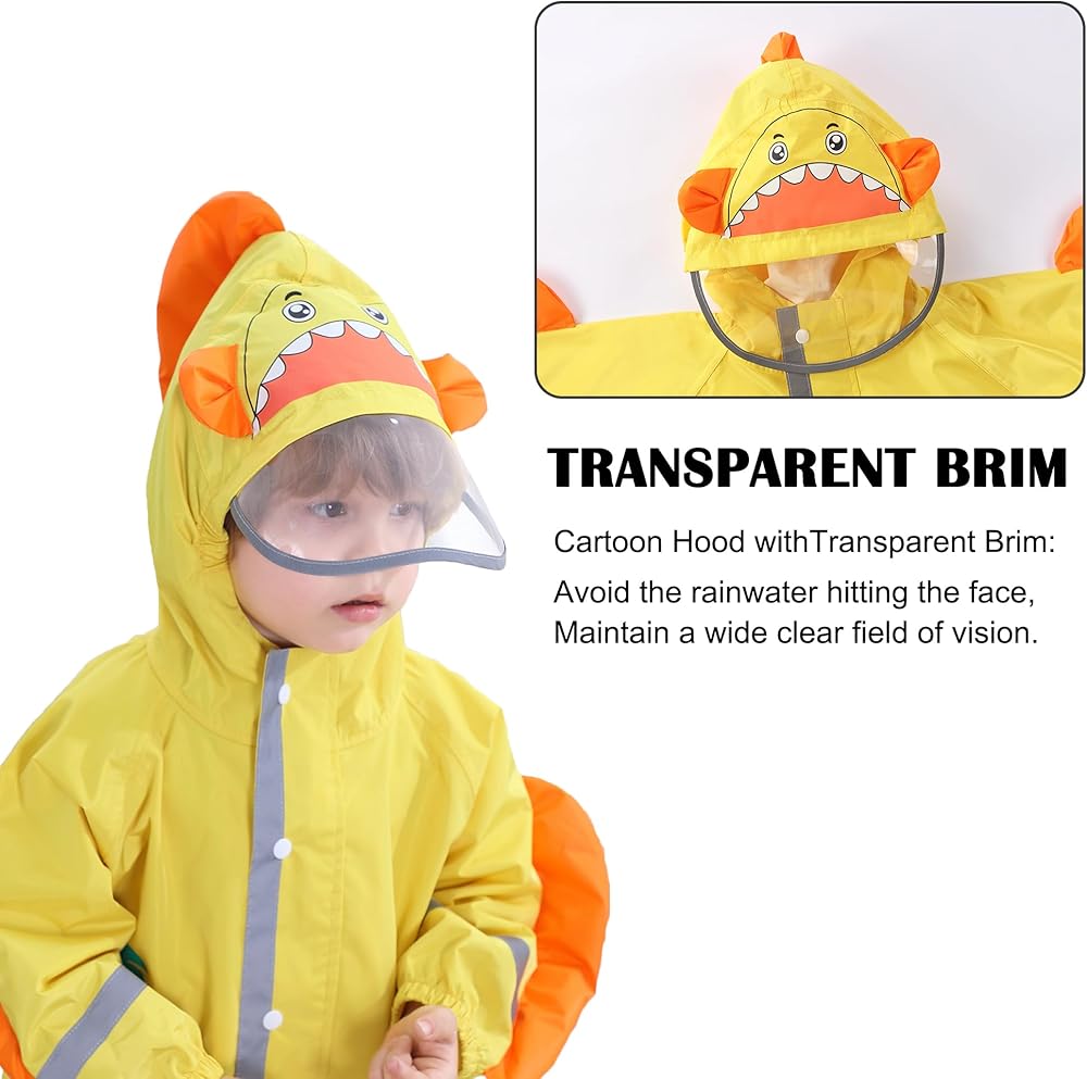 Reflective Strip Design: This rain suit has reflective strips on the cuffs, front and back. Can greatly improve the safety of children walking in the rain.