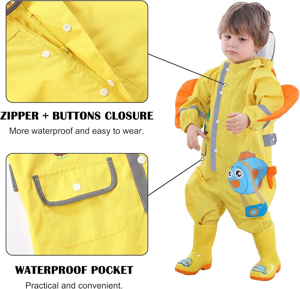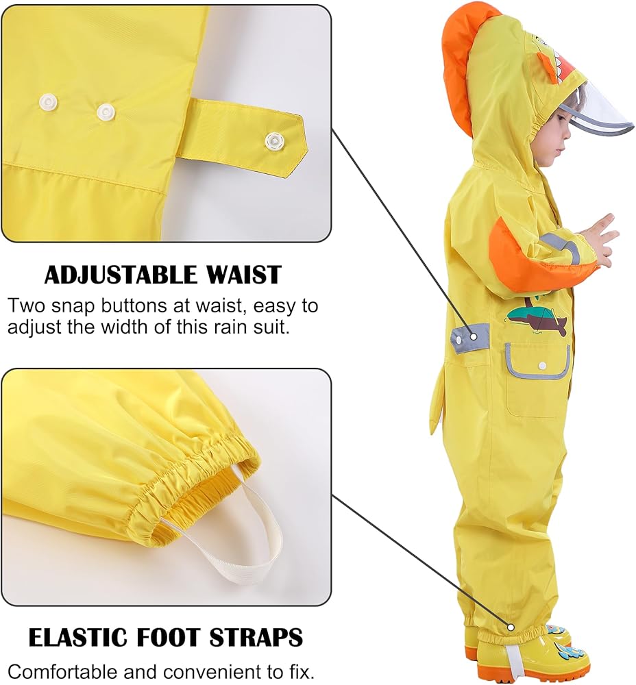 Easy To Wash: With the Nylon material, dirt and mud rinse off easily from this baby rain suit.
