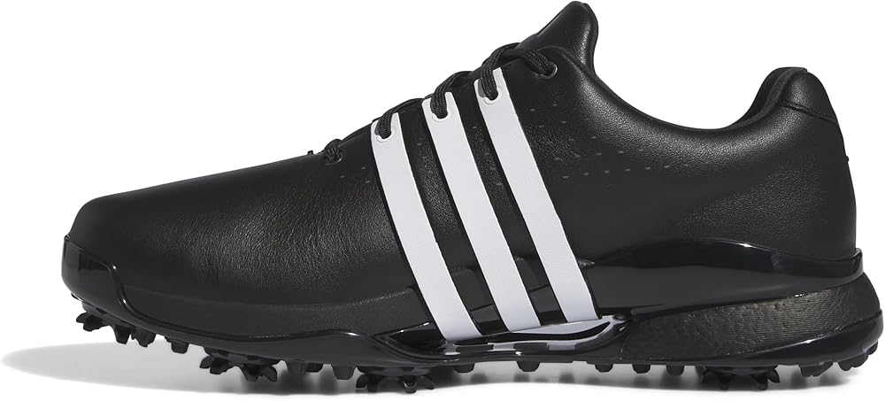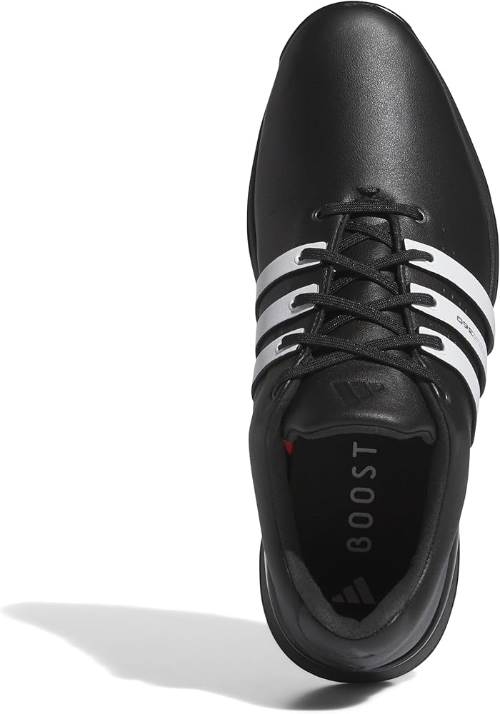 Lead with confidence and style in these men's golf shoes. Made for tournament play, they wrap your feet in premium materials and feature cutting-edge design for elite-level performance. A combination of adidas Lightstrike cushioning and JET BOOST in the heel empowered by Torsion Bridge energizes every step and stabilizes your powerful swing. The waterproof leather upper with 360Wrap supports your foot for long-lasting comfort and endurance. Elevate your game with golf shoes that let you play and feel your best.
