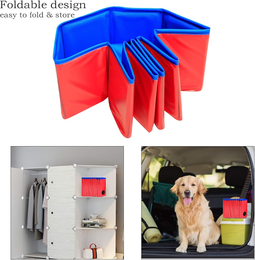 COOL DOG POOL: Dog bath pool can not only take a bath, but also provide a cool swimming pool for your lovely pet. Imagine how interesting you and your pets can play water outdoors in the hot summer! Foldable design, easy to store in your room or trunk.