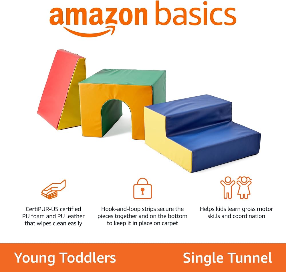 Amazon Basics Kids Soft Play Tunnel, Crawling Tunnel for Toddlers, Indoor Gross Motor Toy, 60 x 20 x 15 inches