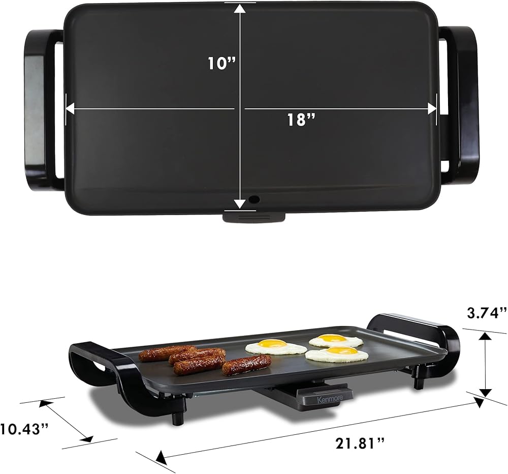 Kenmore Electric Griddle NonStick 1500W Adjustable Temperature 10"x18" Easy to Clean Large Cooking Surface Ideal for Pancakes Grilled Cheese Breakfast and Family Meals
