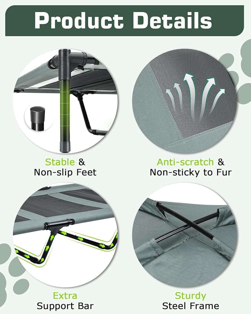 🐶【Cooling Comfort & Chew-proof Fabric】: Our elevated dog bed constructed with 600D Oxford fabric and breathable mesh, which is non-sticky to fur, as well as chew and scratch-proof; combined with the elevated design, it promotes air circulation and keeps your pet cool and comfortable at all times. Suitable for dogs of all ages, from puppies to senior dogs!