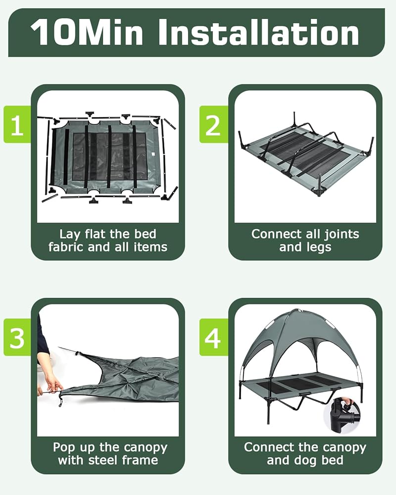 🐶【Easy to Assemble】: With straightforward assembly instructions, the cooling elevated dog bed can be set up in just 20 minutes, allowing you to provide your furry friend with a comfortable resting space without any fuss. (➡Tip: It is necessary to operate according to the installation sequence in the manual)