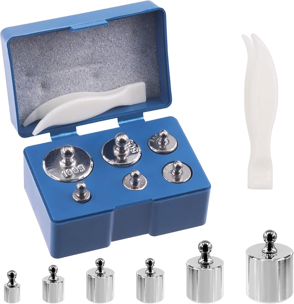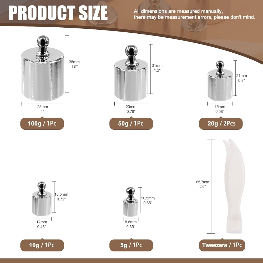 🌱 Wokape 16Pcs 10 Sizes 10g 20g 50g 100g 200g Precision Steel Scale Calibration Weight Kit Test Weights Kits with Tweezers and Chip Calibration Weights for Digital Balance Scale Laboratory
