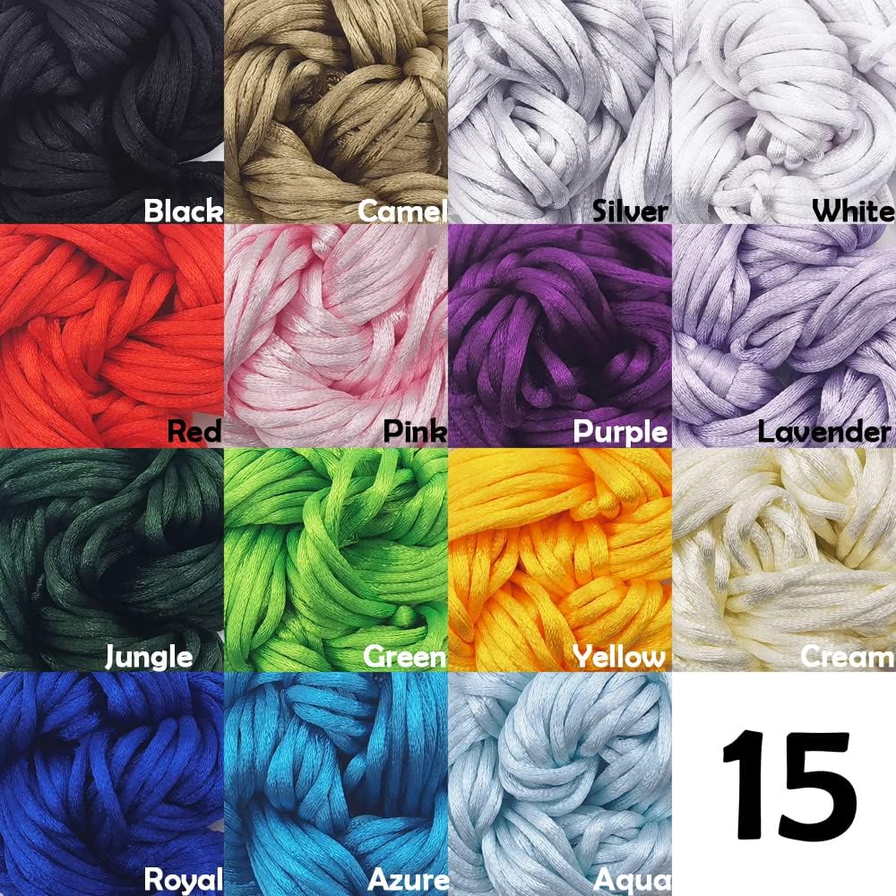 INSPIRELLE 2.5mm 15 Colors Satin Cord Rattail Silk Cord Chinese Knot Thread for Jewelry Making, 10 Yards Each Color