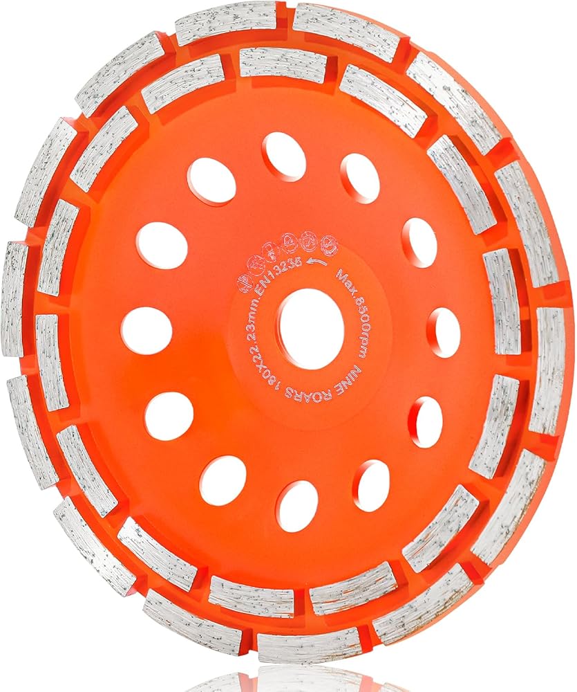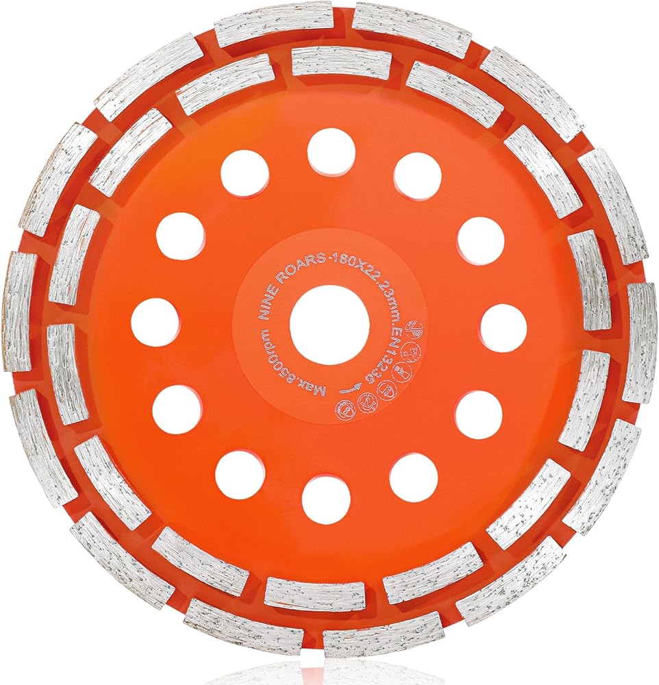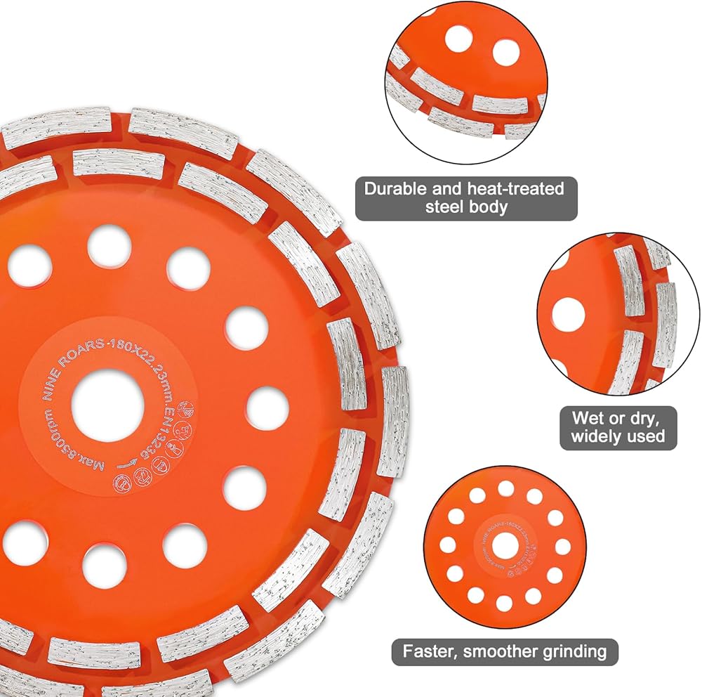 [Faster, smoother grinding] - The 7-inch double row grinding wheel uses 12+12 diamond segments to effectively reduce side friction and ensure extremely high grinding speeds. Diamond as a very hard material, can provide excellent grinding effect and wear resistance, so that the grinding wheel has a longer service life and higher grinding efficiency.