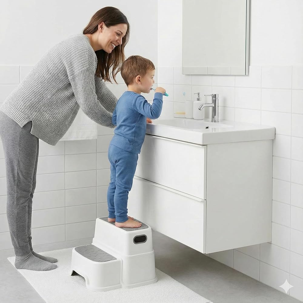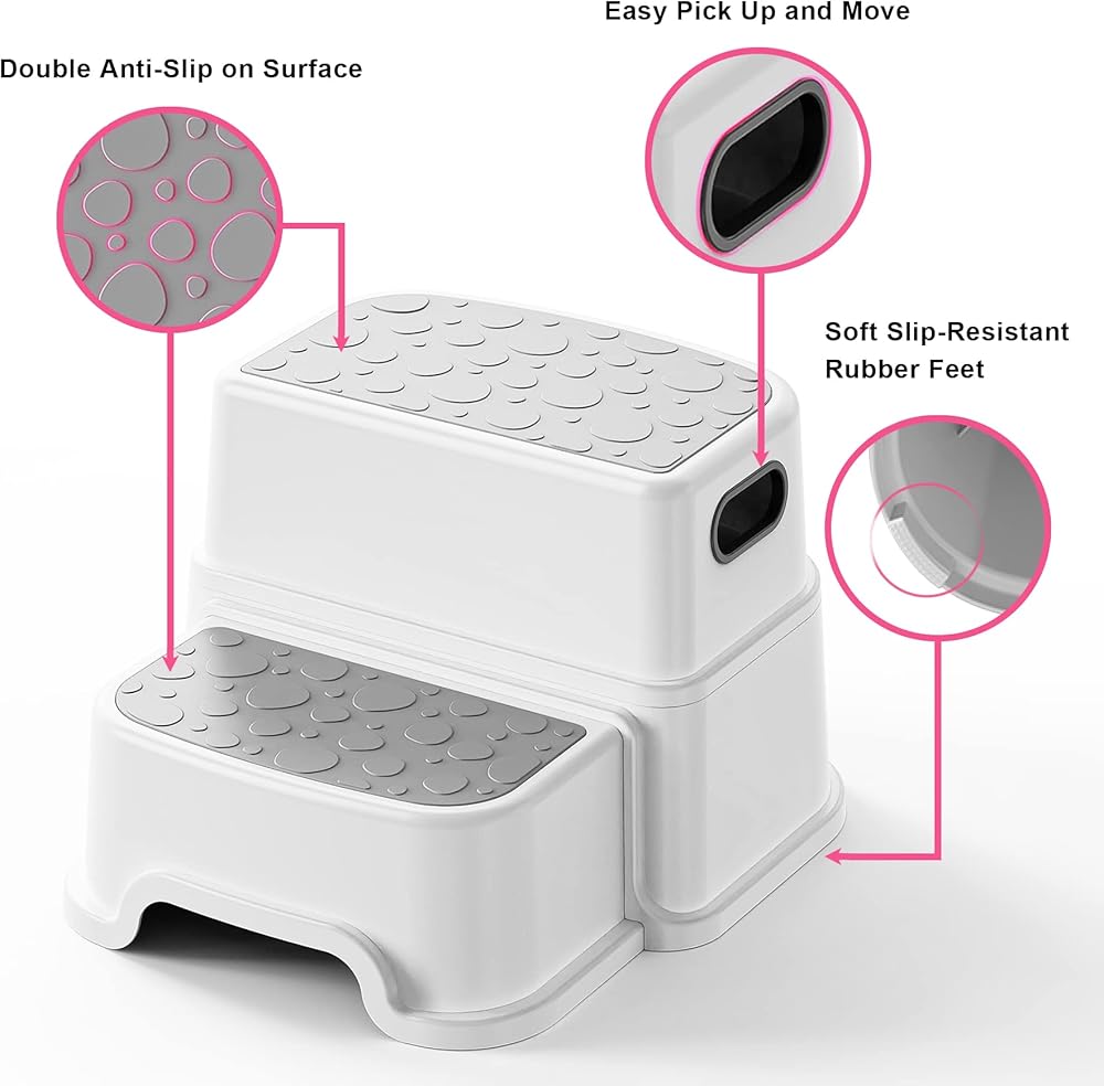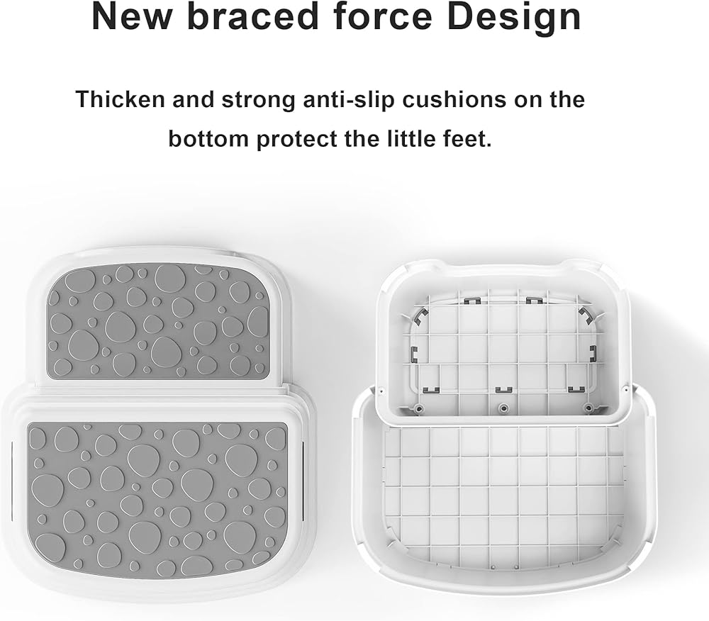 👧🏻Safe and Sturdy: A good quality kids step stool should be made from durable materials that can support the weight of kids, with non-slip surfaces to ensure safe use