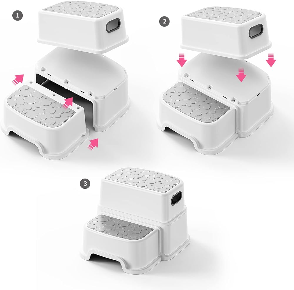 👧Portable: Toddler step stool should be lightweight and easy to move around, so kids can use it wherever they need it, whether that's in the kitchen, bathroom, or playroom.