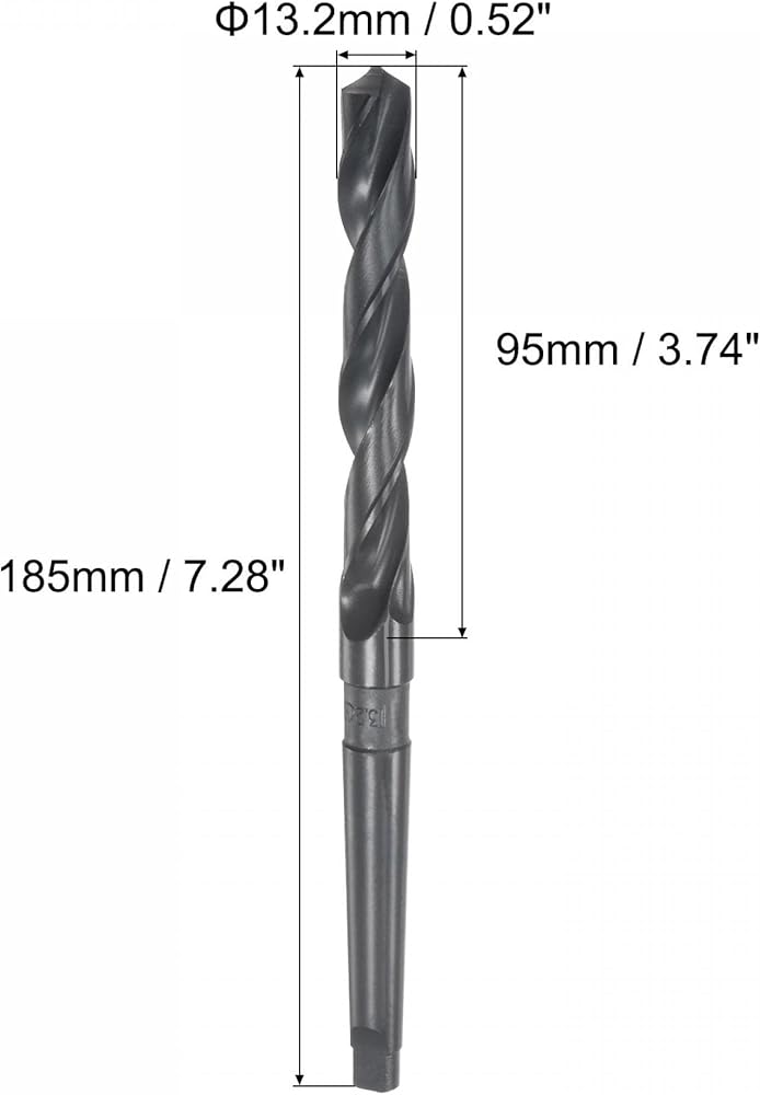 - Specifications: Taper Size: MT1; cutting diameter: 13.2mm / 0.52"; cutting length: 95mm / 3.74"; total length: 185mm / 7.28".