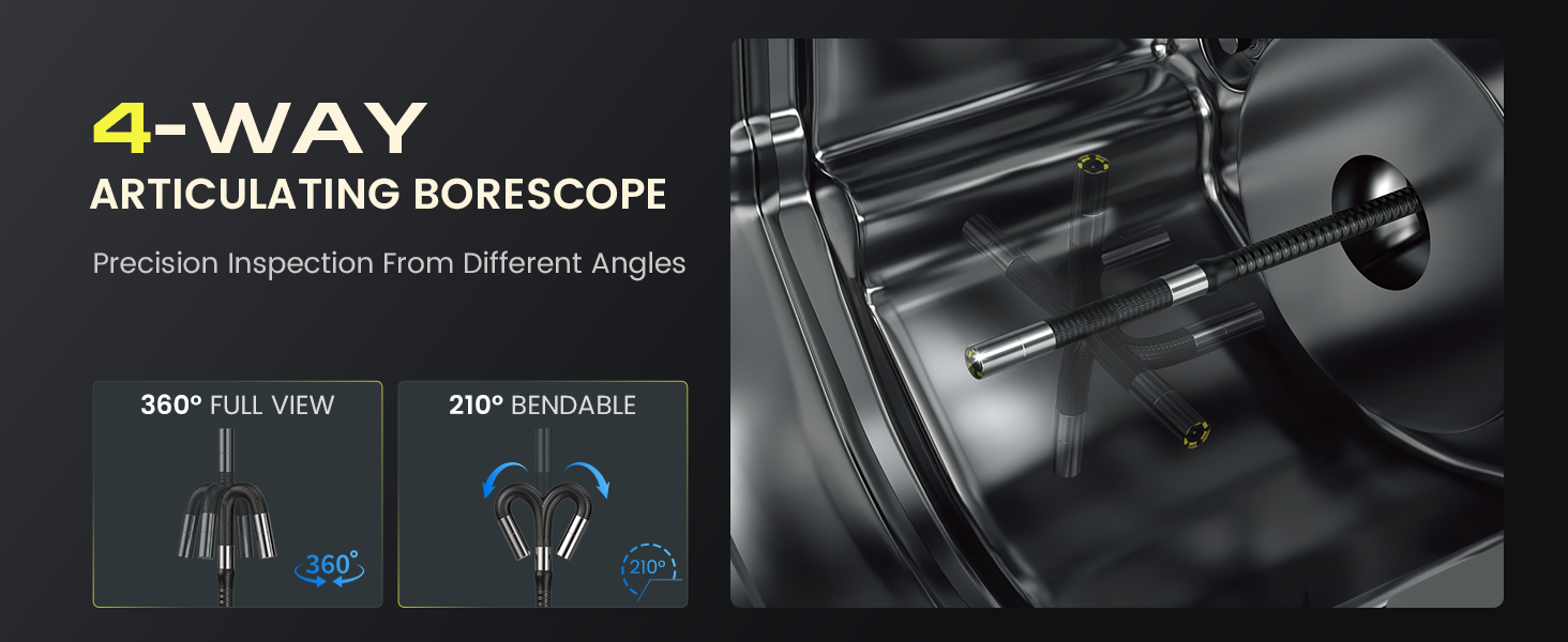 🎁【Unique Gift for Mechanics and Pros】👉This automotive articulating borescope is mainly used for car repair and machine fix, an inspection of the car engine internal carbon deposit, post-maintenance of gearboxes, frames, compressors, oil pipes, and various castings. When your car suffers problems, this borescope can help you quickly find the problem, and make the right judgment, which will greatly save your time and cost.