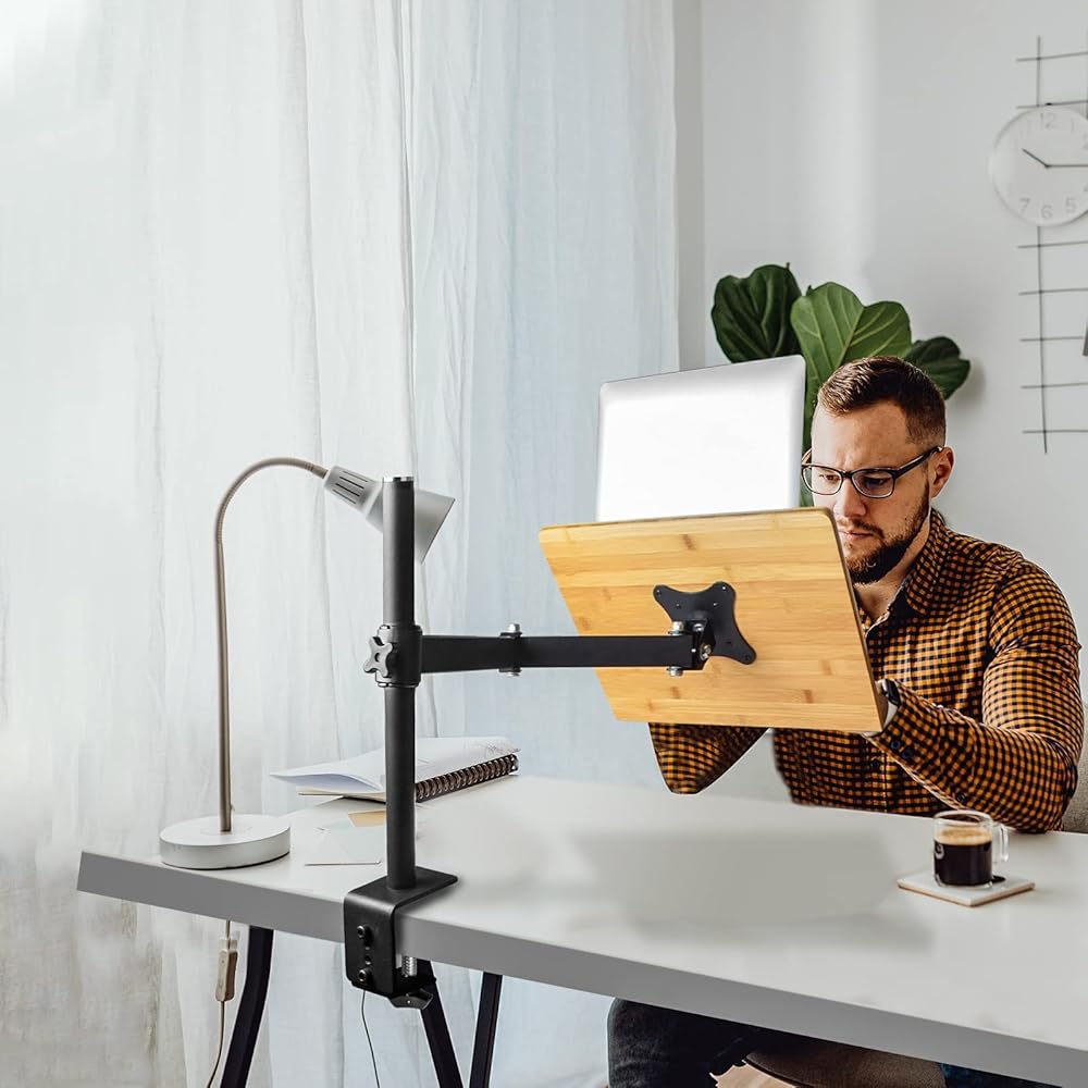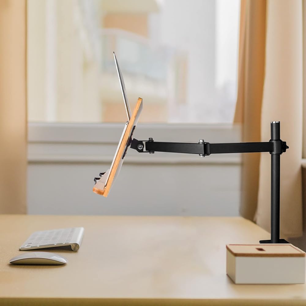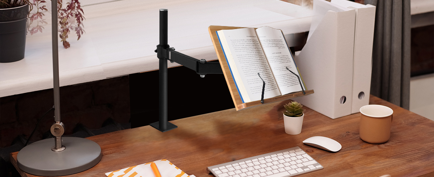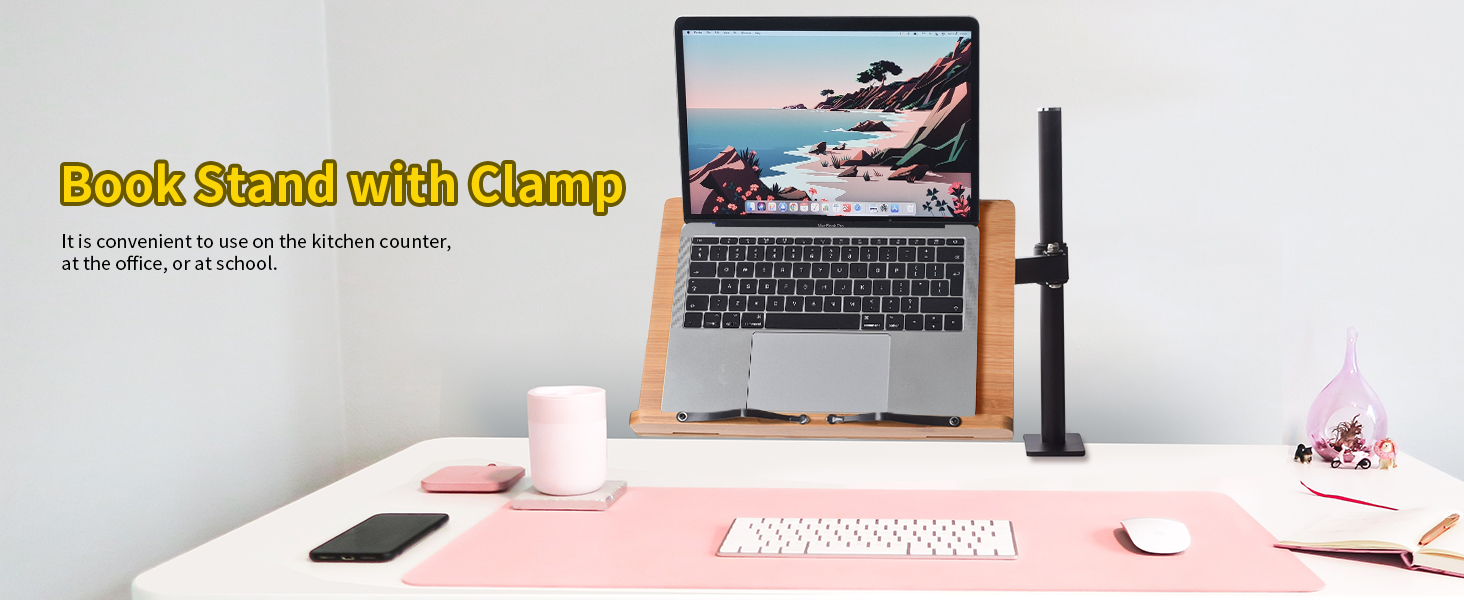 The metal frame and metal c-clamp of Wishacc book stand provide excellent stability and durability without causing any damage to your table. This design greatly saves space on your desktop.