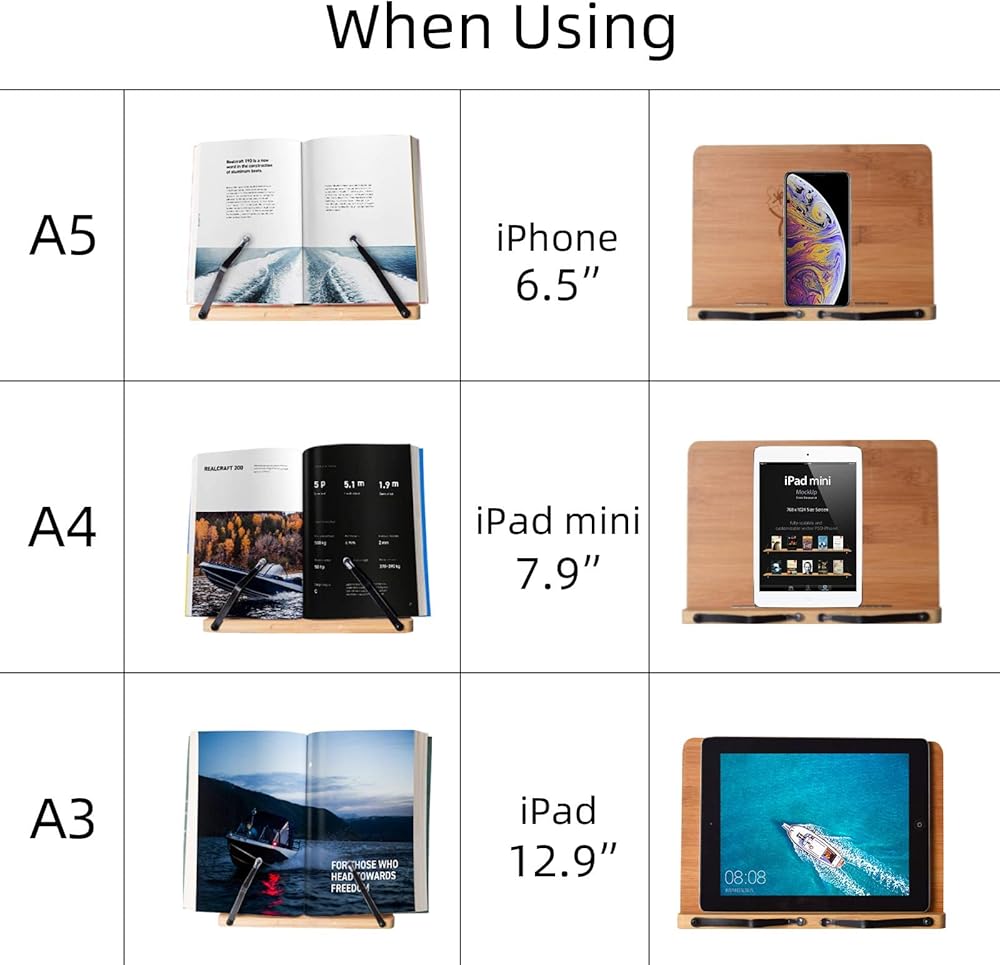 The 11 x 8.1 inch reading bracket tray easily holds a variety of different styles of cookbooks, recipes, textbooks, iPads, sheet music, bibles, paper, tablets, documents and notebooks.