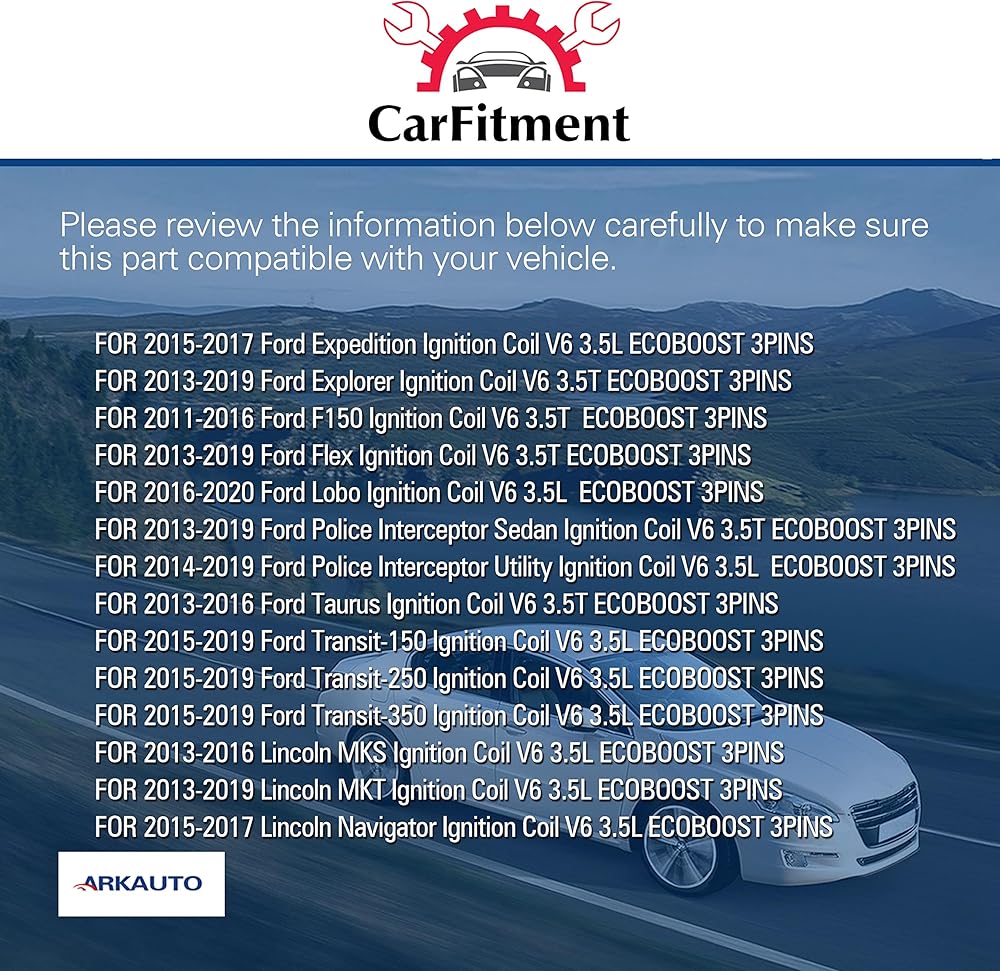ARKAUTO Ignition coils are always made with high grade copper, designed for specific application and tested on road. Please review the information below carefully to make sure this part compatible with your vehicle.
