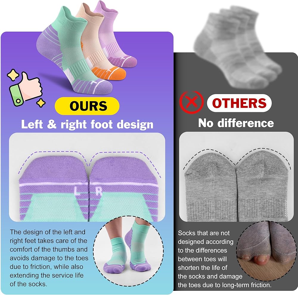 L&R Quarter Compression Socks: The ankle compression socks are meticulously crafted to perfectly complement the contours and shapes of both left and right feet, offering exceptional ergonomic fit and comfort. Ideal for daily wear, including work, shopping, or social activities, they are also suitable for short trips, leisurely walks, camping, and other outdoor activities.