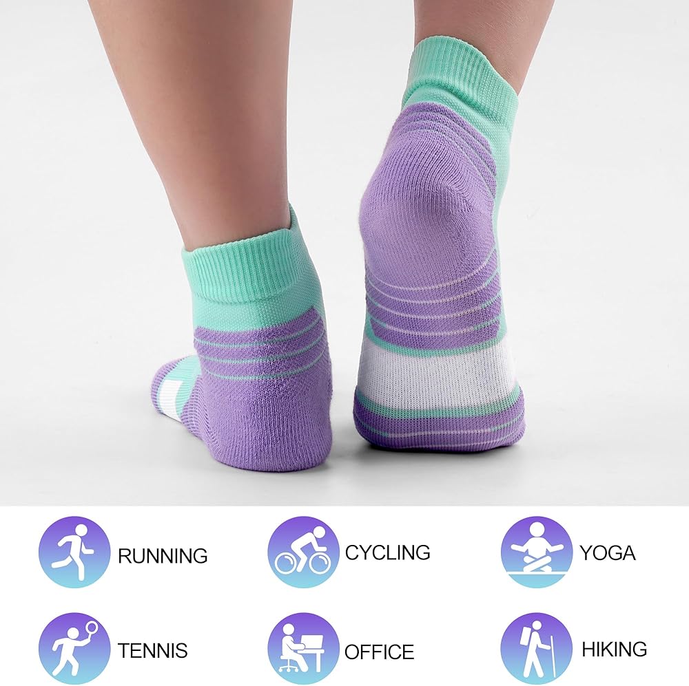 Athletic & Fashion: Our ankle socks stand out with a stylish appearance and a vibrant color palette. From workouts to casual outings, these ankle socks not only elevate your athletic performance but also keep you in tune with the latest trends. Whether it's running, basketball, sport, tennis, yoga, hiking, or cycling. The quarter socks women provide outstanding support and comfort. With size options of 6-9 and 9-12, catering to diverse preferences, ensuring every wearer finds the perfect fit.