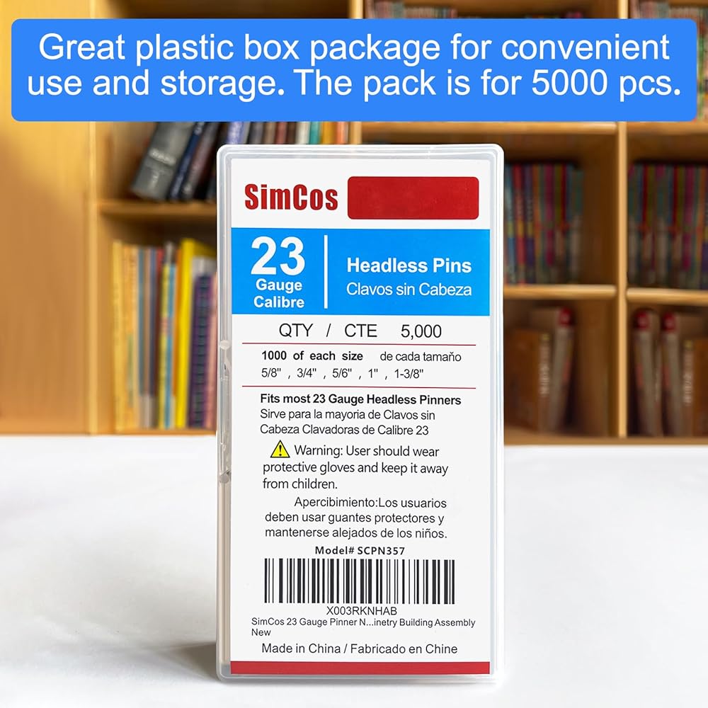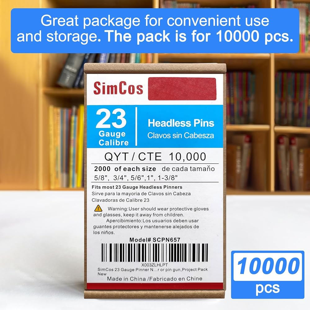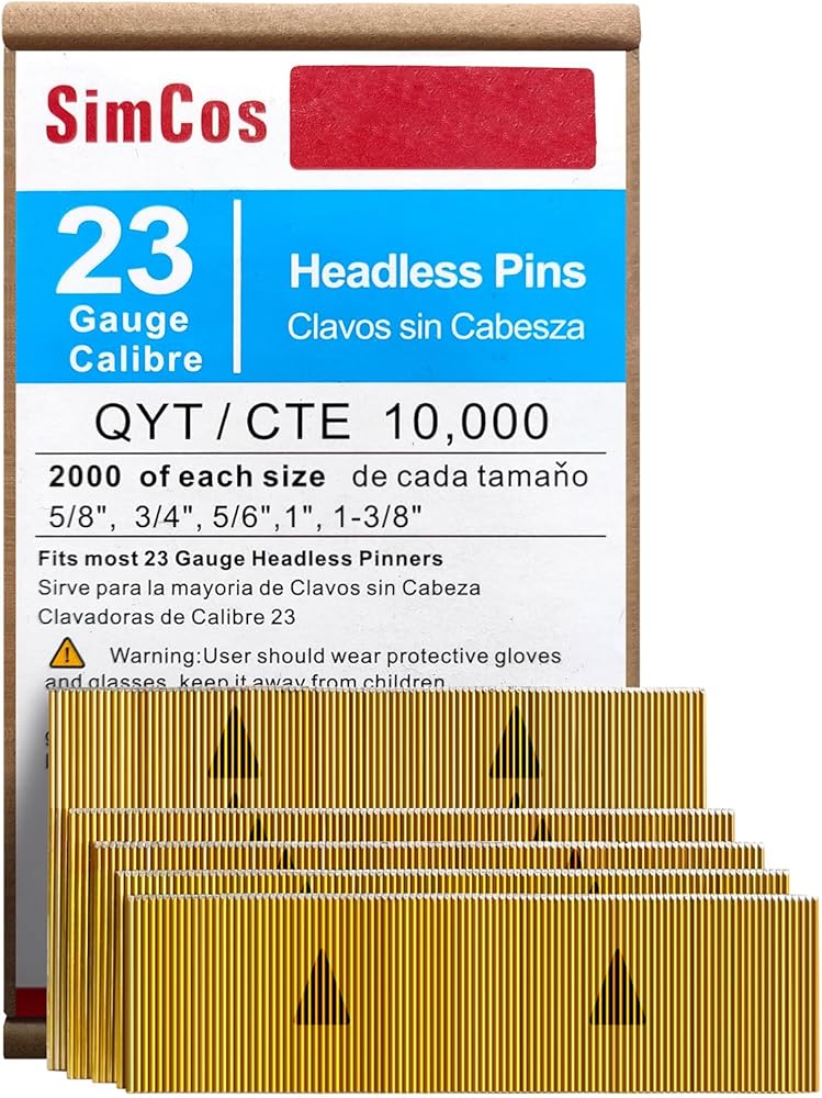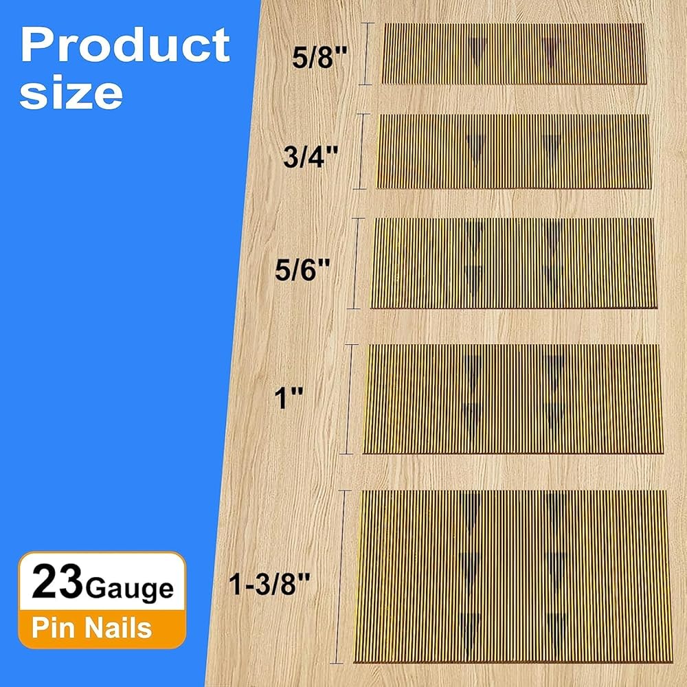 23 Gauge Pinner Nails (5/8",3/4",5/6",1",1-3/8") assorted 5 sizes' Headless Pin Nails for 23 GA Pneumatic or Electric Pinner or pin gun,Project Pack (10000)
