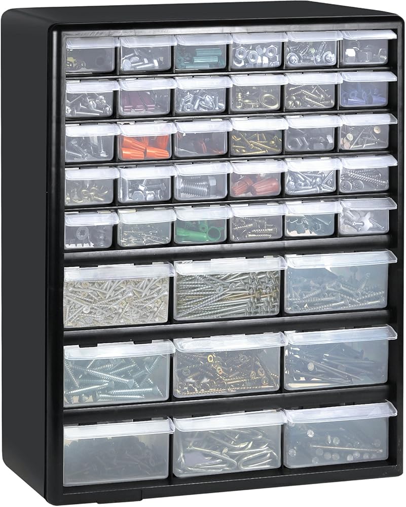 Easy to Use - Our workshop organizer is created with you in mind. The drawers are clear so that you can easily & quickly view contents. Our drawers also feature finger grips for easy opening and rear tabs to prevent the drawer from falling