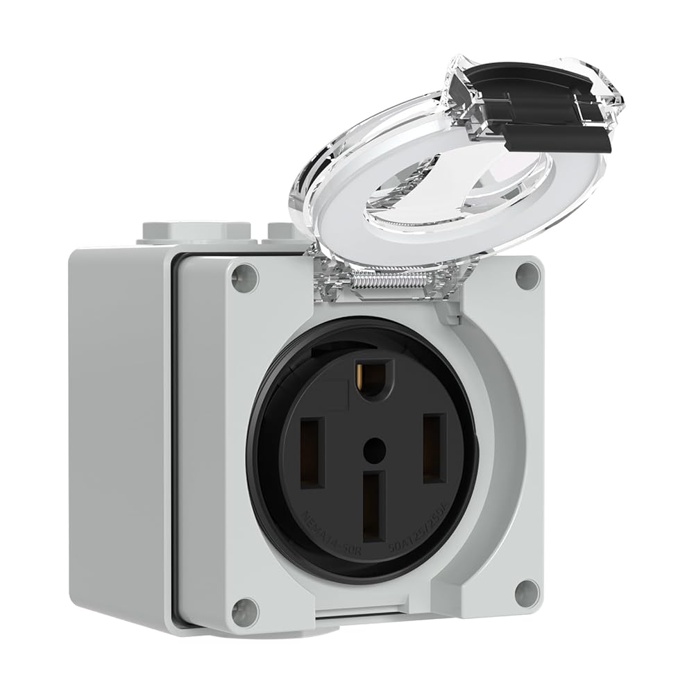 Specifications:NEMA 14-50R Receptacle With Protective Box Power Socket.Compatible With 50A Welding Machine/EV/RV Cord