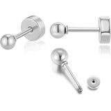 Flat Screw Back Ball Stud Earrings for Girls,Dainty 3mm 4mm Ball Earrings for Cartilage Helix Tragus Earlobe Piercing for Women Toddlers Hypoallergenic