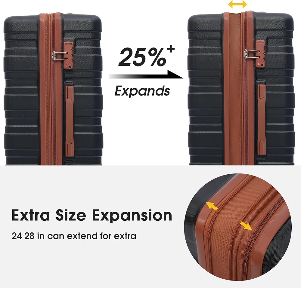 [25% Expendable Design] 28 inch luggage are expandable,adding 25% space capacity for hardshell luggage, it allow you to pack more items and compression keeps clothing neatly pressed.