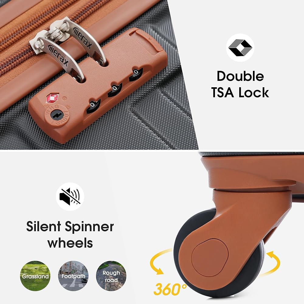 [Easy Maneuvering] - 4 silent Multi-directional double spinner wheels make this suitcase as mobile as they get. Regardless of direction, these wheels allow your suitcase to stay upright while getting pushed, pulled and dragged in any direction. One set(3 pieces) for all life's journeys.