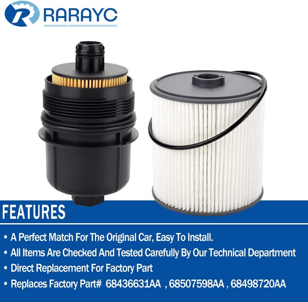 - Replace part number: 68507598AA, 68498720AA 68436631AA Oil Filter and Oil Filter Housing Cap Assembly.