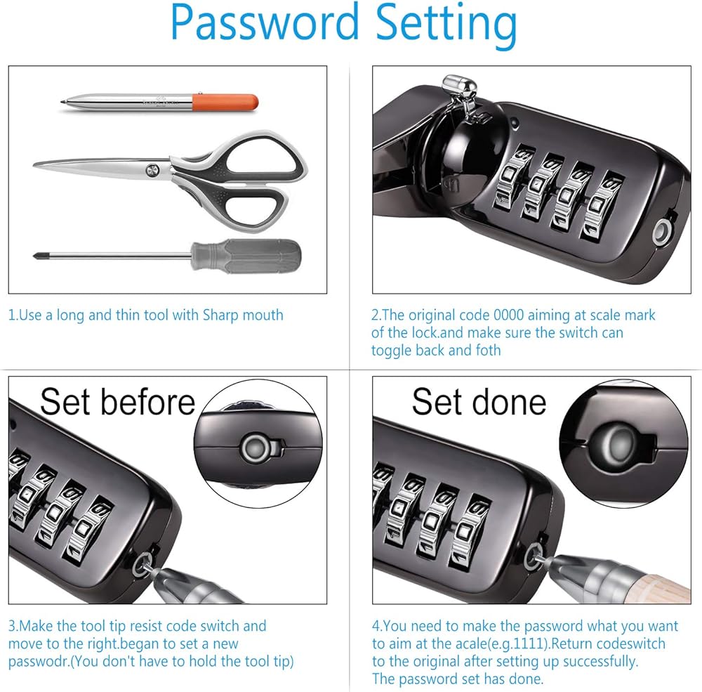 【How to Change Password】1.Select the correct password (Default password: 1000). 2. Press and hold the reset button (Not Switch button,in side of the password). 3.Change your Password,then release the reset button. Make sure you note your password carefully and check that the lock functions correctly.