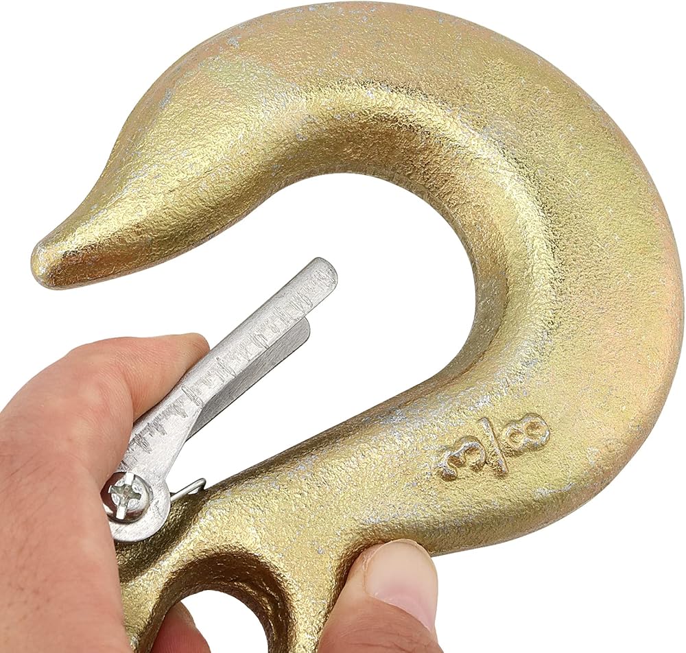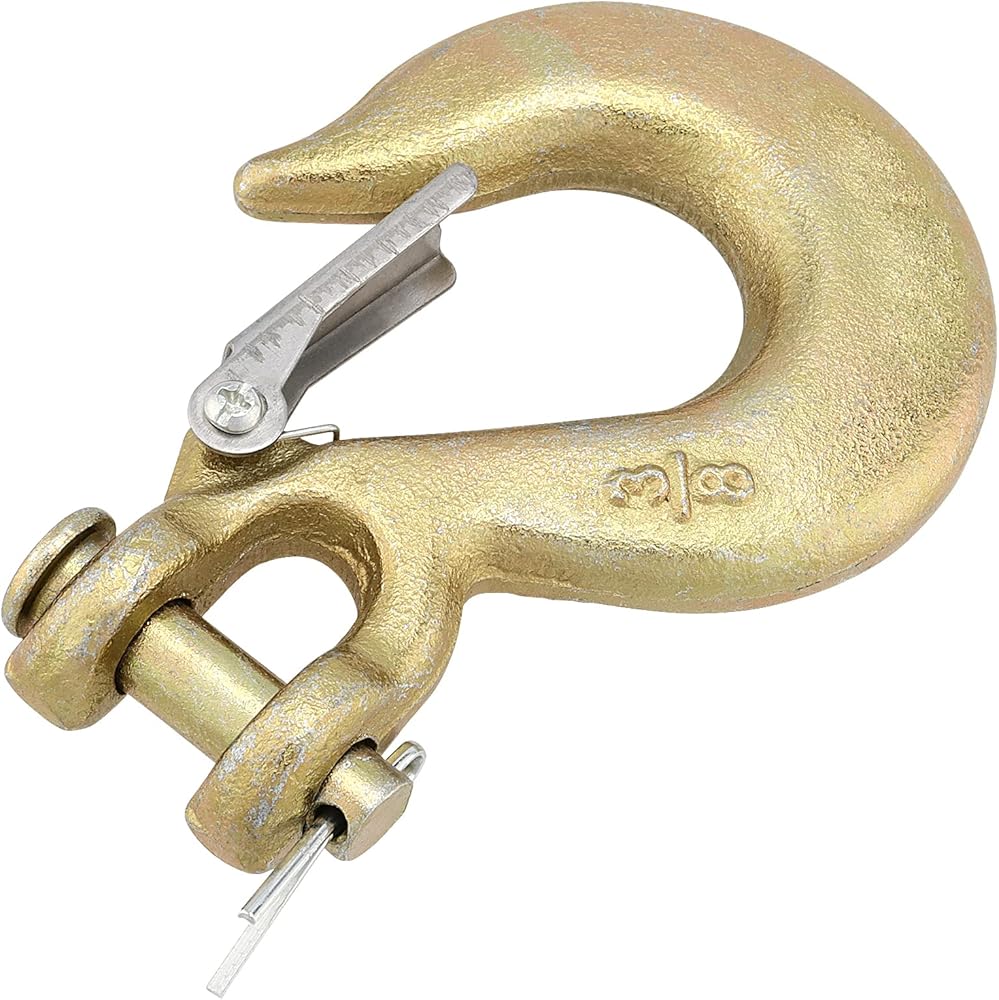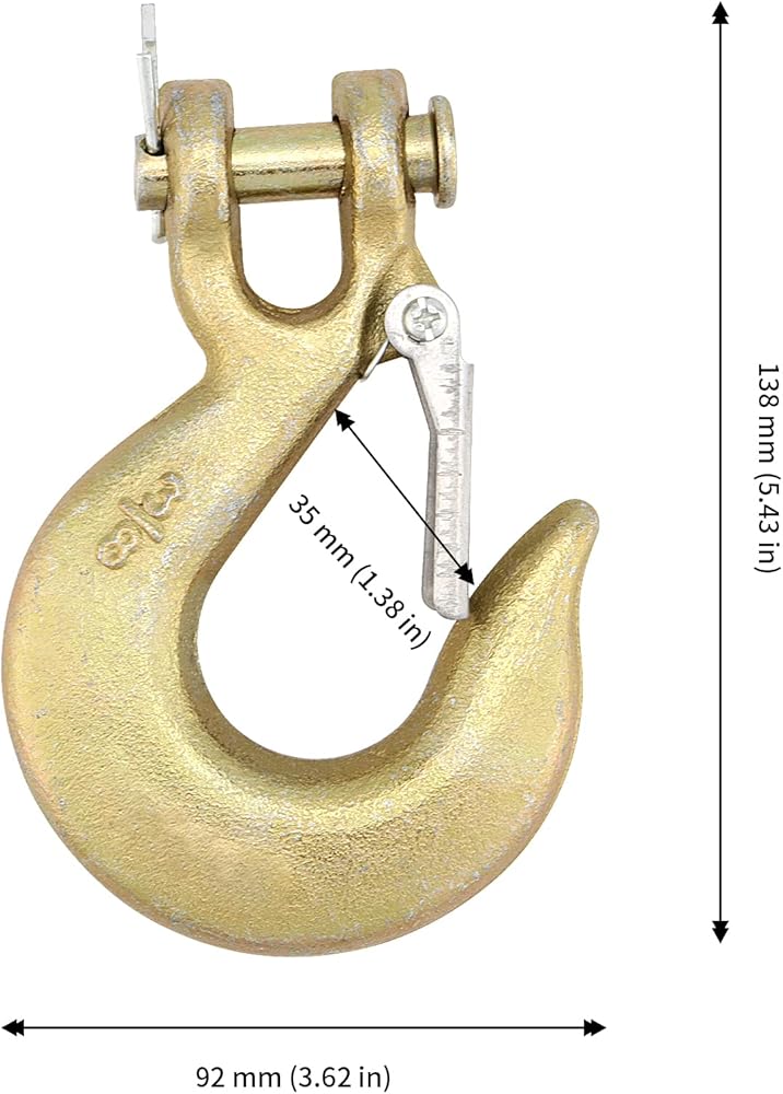 ♡3/8 clevis slip hook works well with 3/8 inch chains. Adjustable safety latch ensures quick release, secure and easy connection.