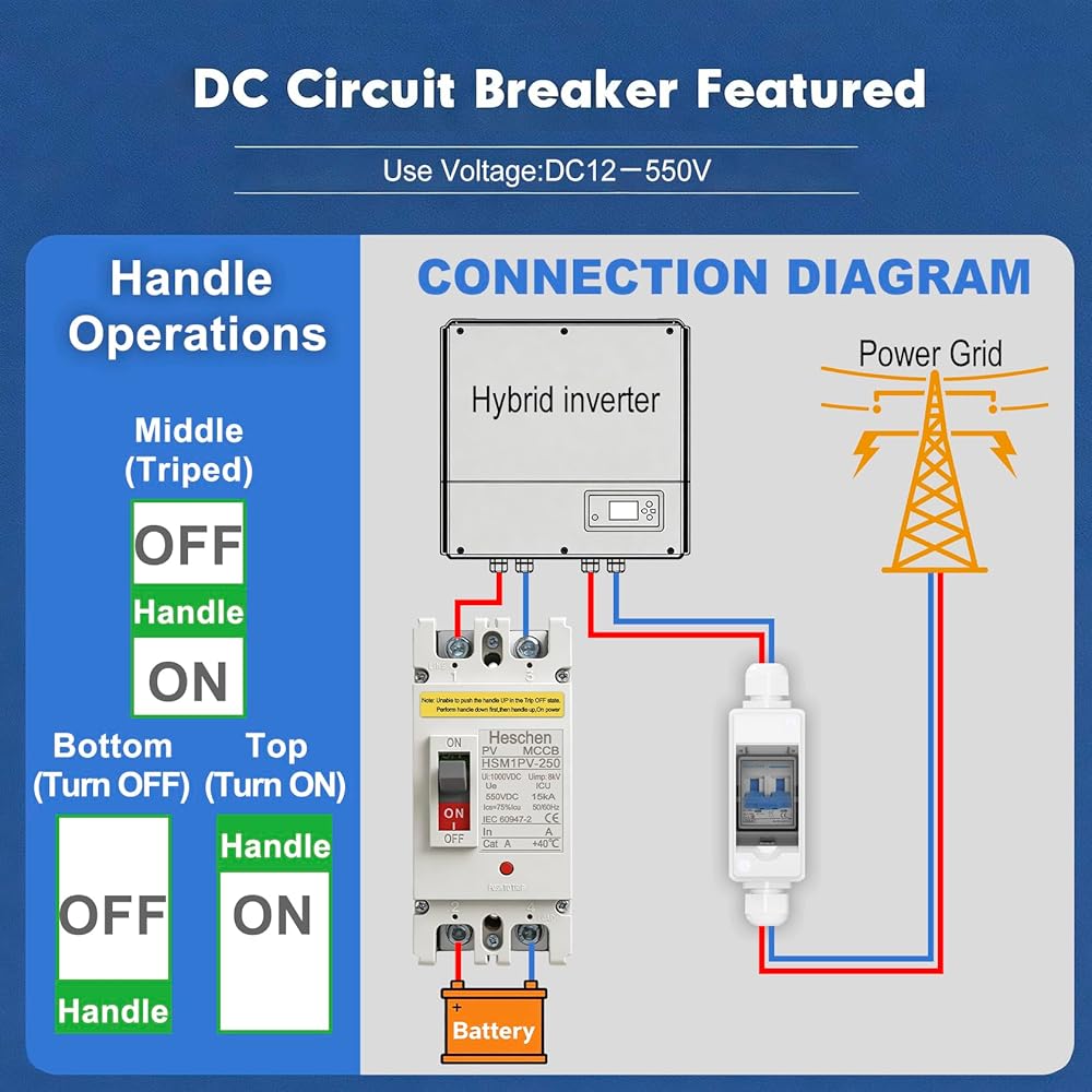 MCCB solar battery protection switch environmental usage temperature from ‑10℃ - 50℃, suitable for more extreme environment.