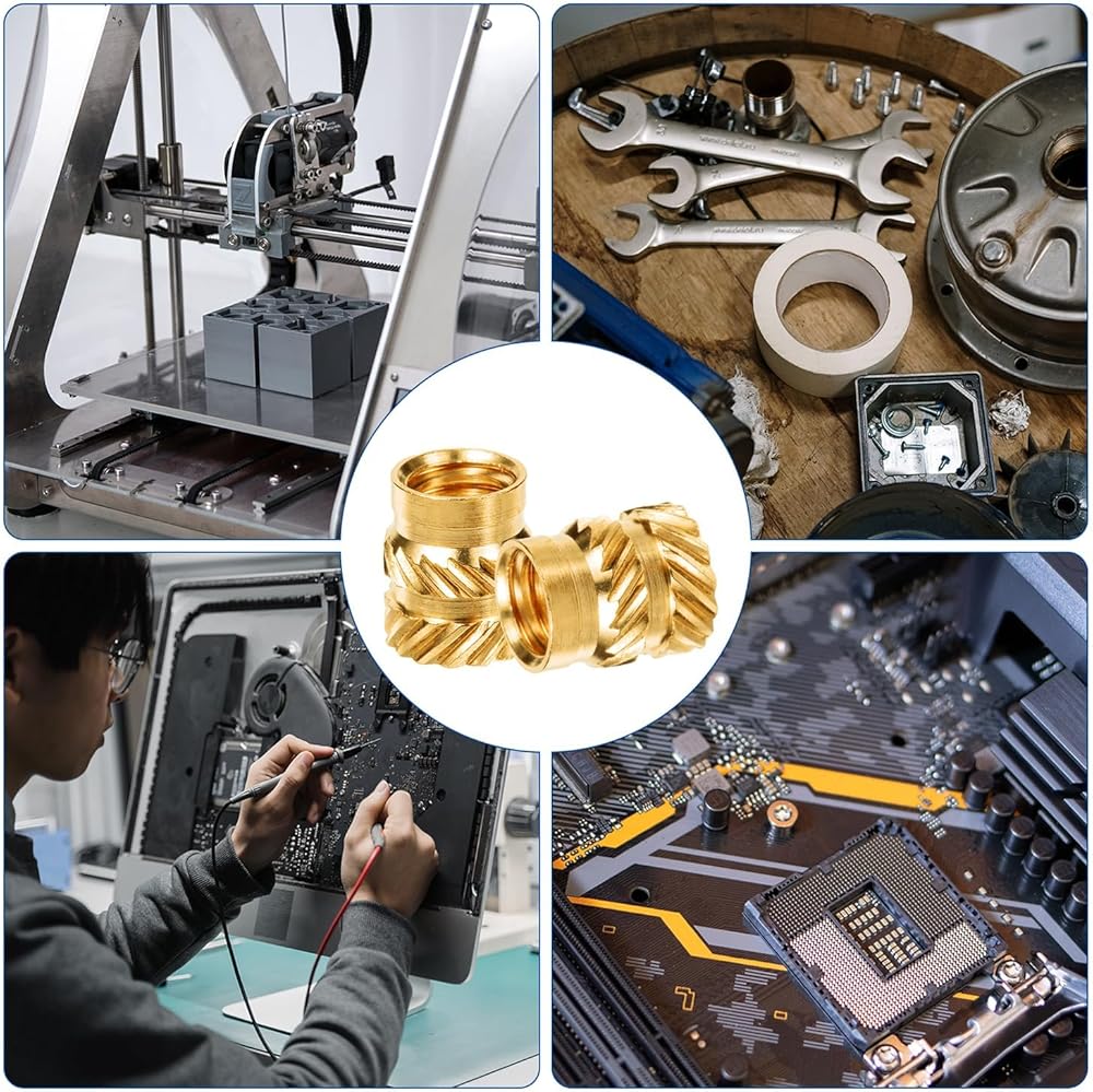 Wide Application: These m3 threaded insert nuts can be inserted into various plastics, such as PC, PA, PLA, ABS, PETG, etc. Suitable for installing on 3D printers, electrical molding machines, electrical injection molding, automotive or laptop molding plastic shells, etc.