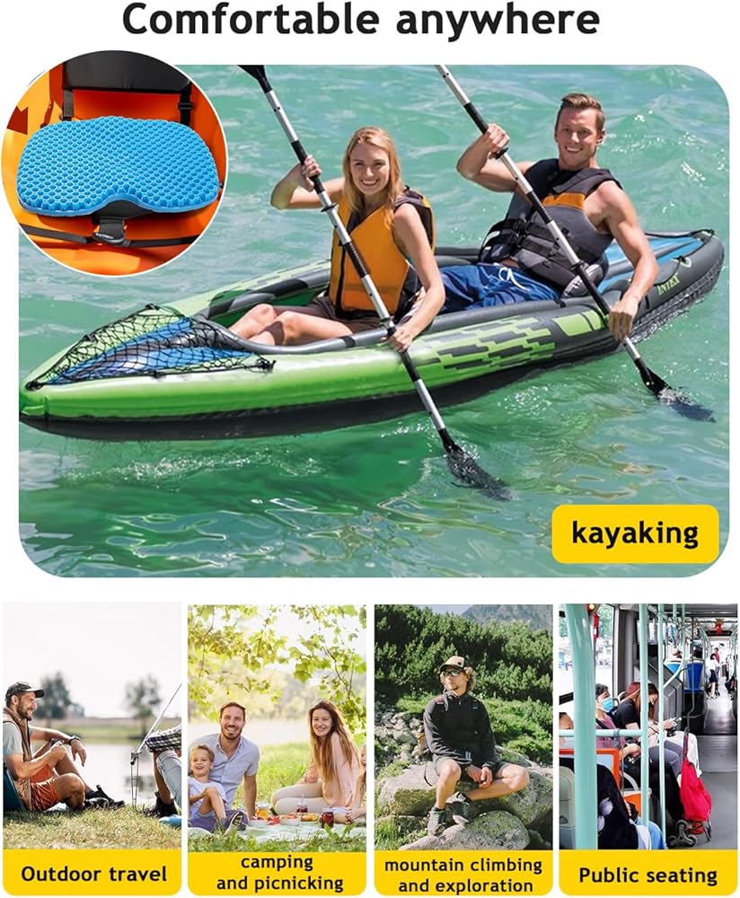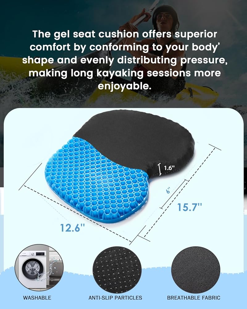 🖤🖤【Increase Comfort】The gel cushion features a high-elastic and pressure-resistant gel padding that provides superior comfort and reduces discomfort caused by prolonged sitting. It offers targeted protection for key areas such as the tailbone and sit bones, ensuring a more relaxed experience while kayaking or engaging in other outdoor activities.