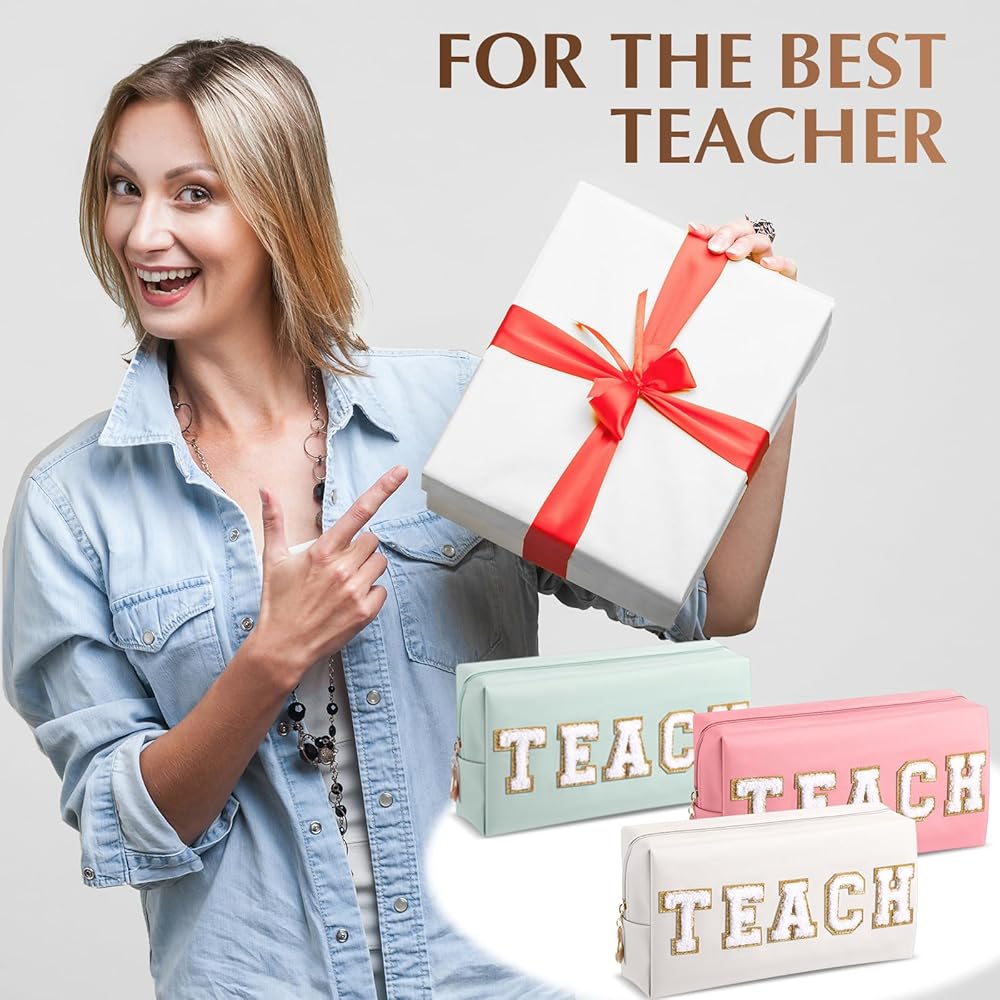 Chunful 9 Pcs Preppy Makeup Bag PU Leather Cosmetic Bag Bulk Makeup Plain Pouch Waterproof Toiletry Purse for Women Traveling Pencil Case Valentine's Day Gifts(Colorful Color,Teach)