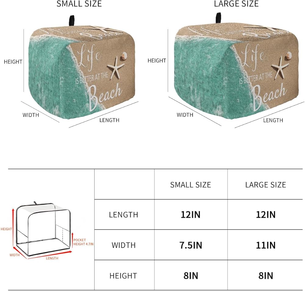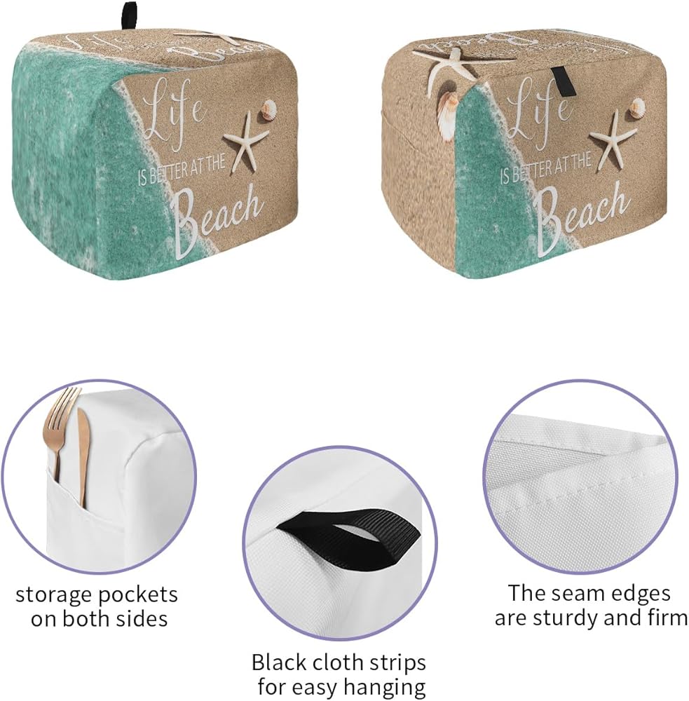 Life is Better at The Beach Toaster Cover 2 Slice, Small Kitchen Appliance Covers, Ocean Nautical Coastal Starfish Toaster Oven Cover with Loop, Bread Machine Cover Polyester Dust Cover Protection