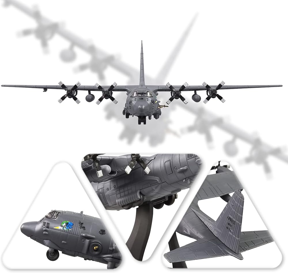 HANGHANG 1/200 AC-130 Fighter Plane Metal Aircraft Model Military Airplane Model Diecast Plane Model for Collection or Gift