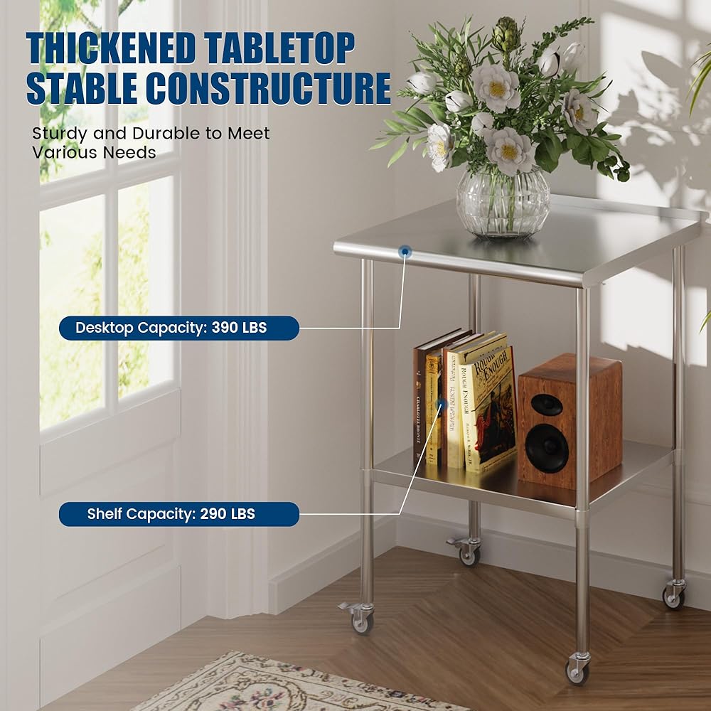Premium 430 Stainless Steel: Experience ultimate strength long-lasting durability with our stainless steel table, withstand corrosion, wear, and even extreme temperatures, offer better rust and corrosion resistance, bring you better food safe and health protection