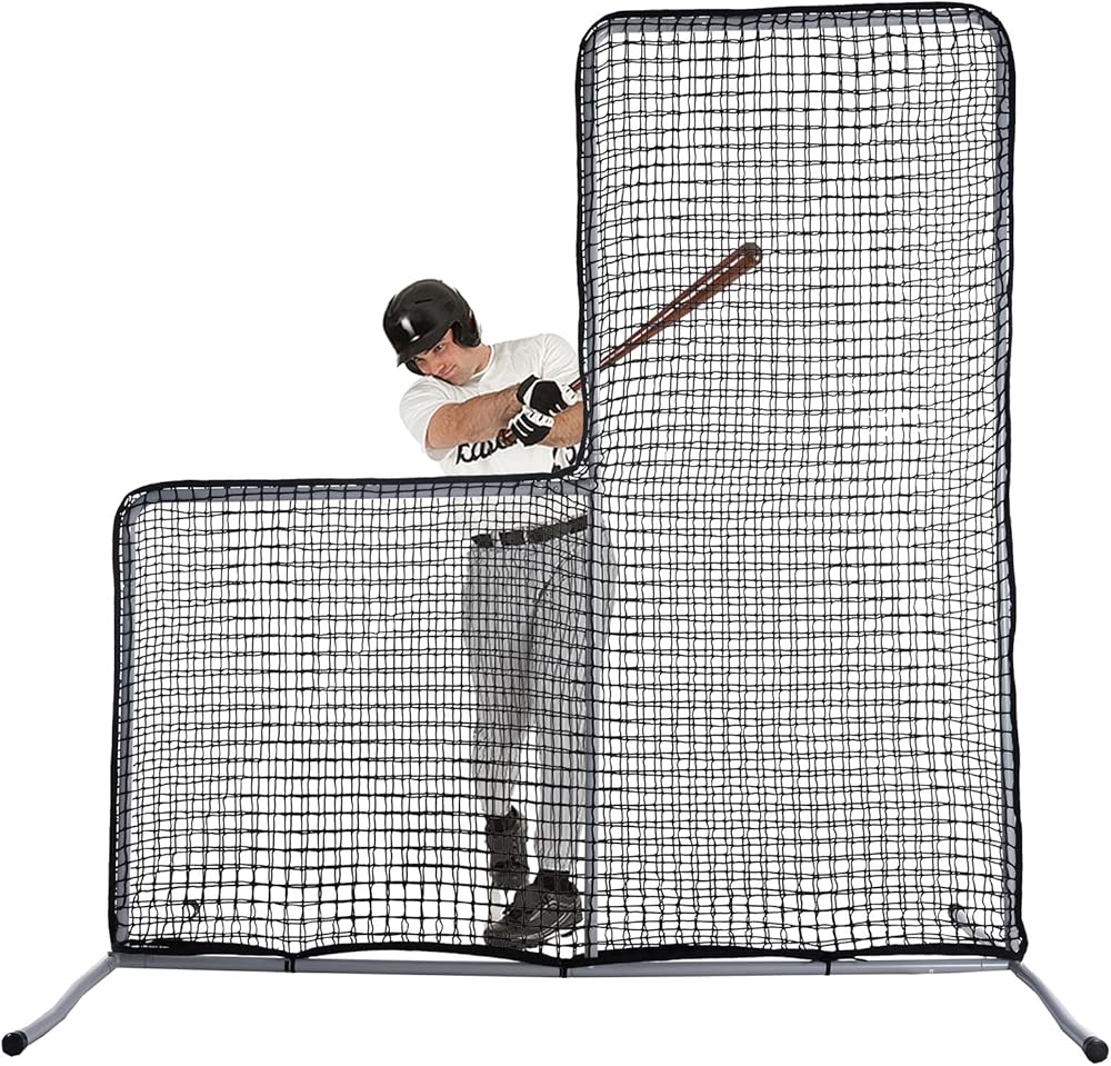 L Shaped Baseball Net, Portable L Screen Baseball Pitching Net for Batting Cage, Baseball and Softball Pitcher L Safety Screen, Baseball and Softball Safety Pitcher's Screen 7x7ft